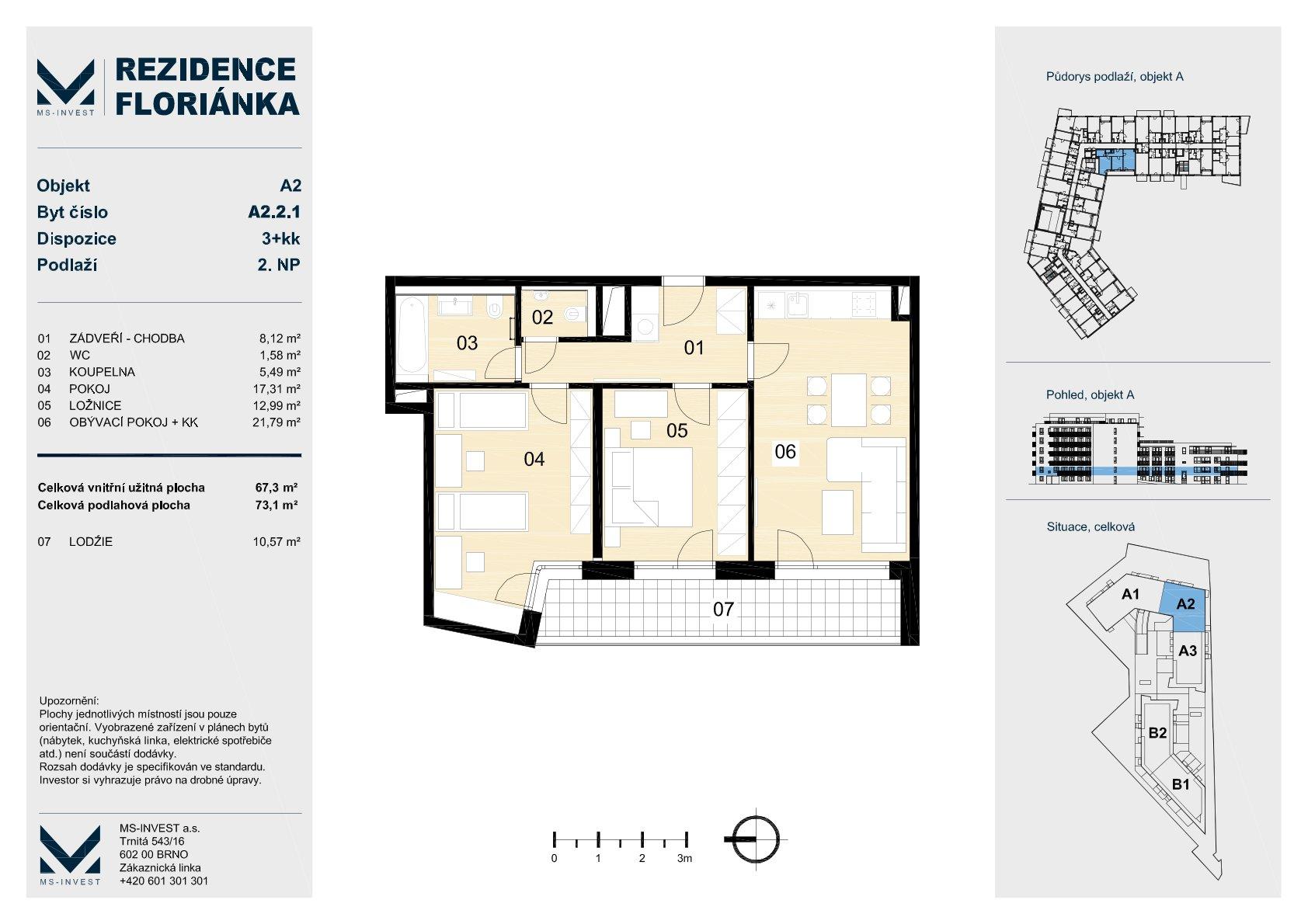 | Dispozice/podlahová plocha: | 3+kk/73 m² |