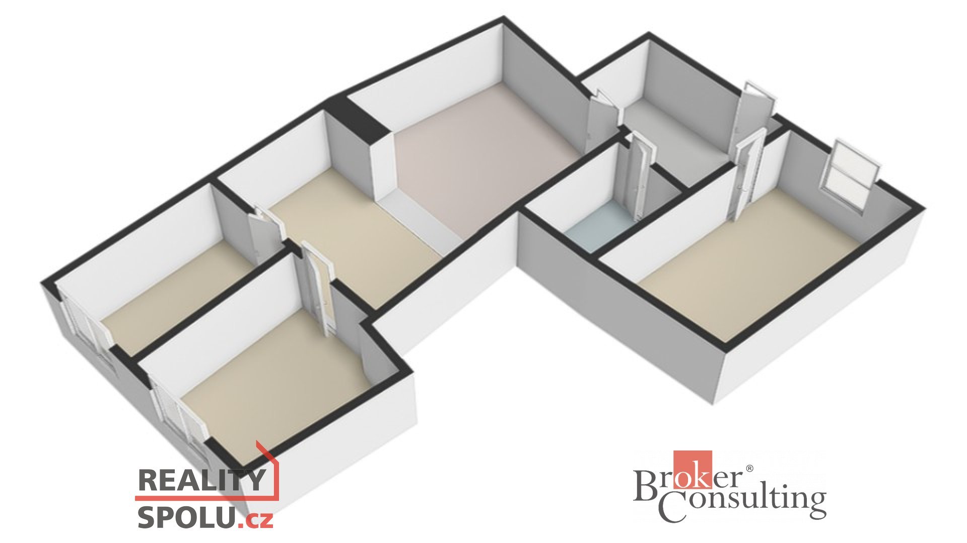 Na obývací pokoj navazují dva samostatné neprůchozí pokoje, které mohou sloužit jako dětské pokoje, pracovna nebo pokoj pro hosty.