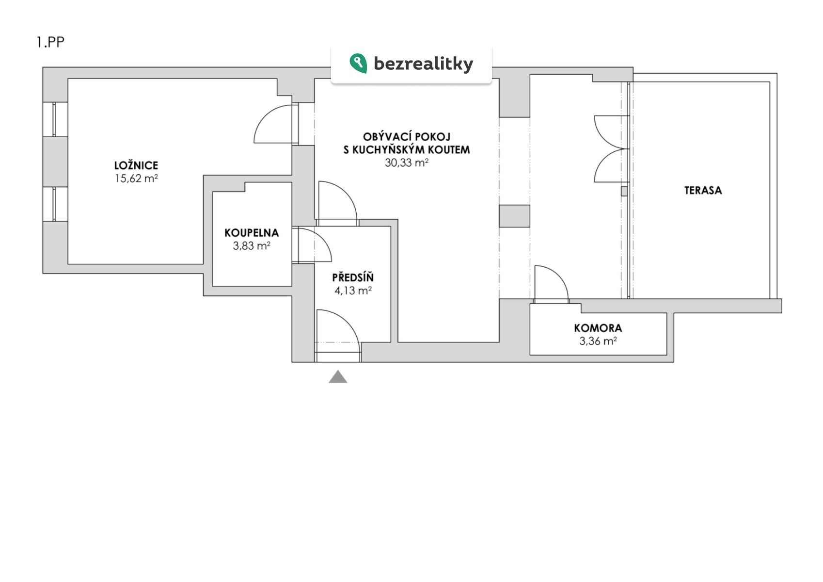• Byt 02: 60,5 m² + balkón 1,8 m²