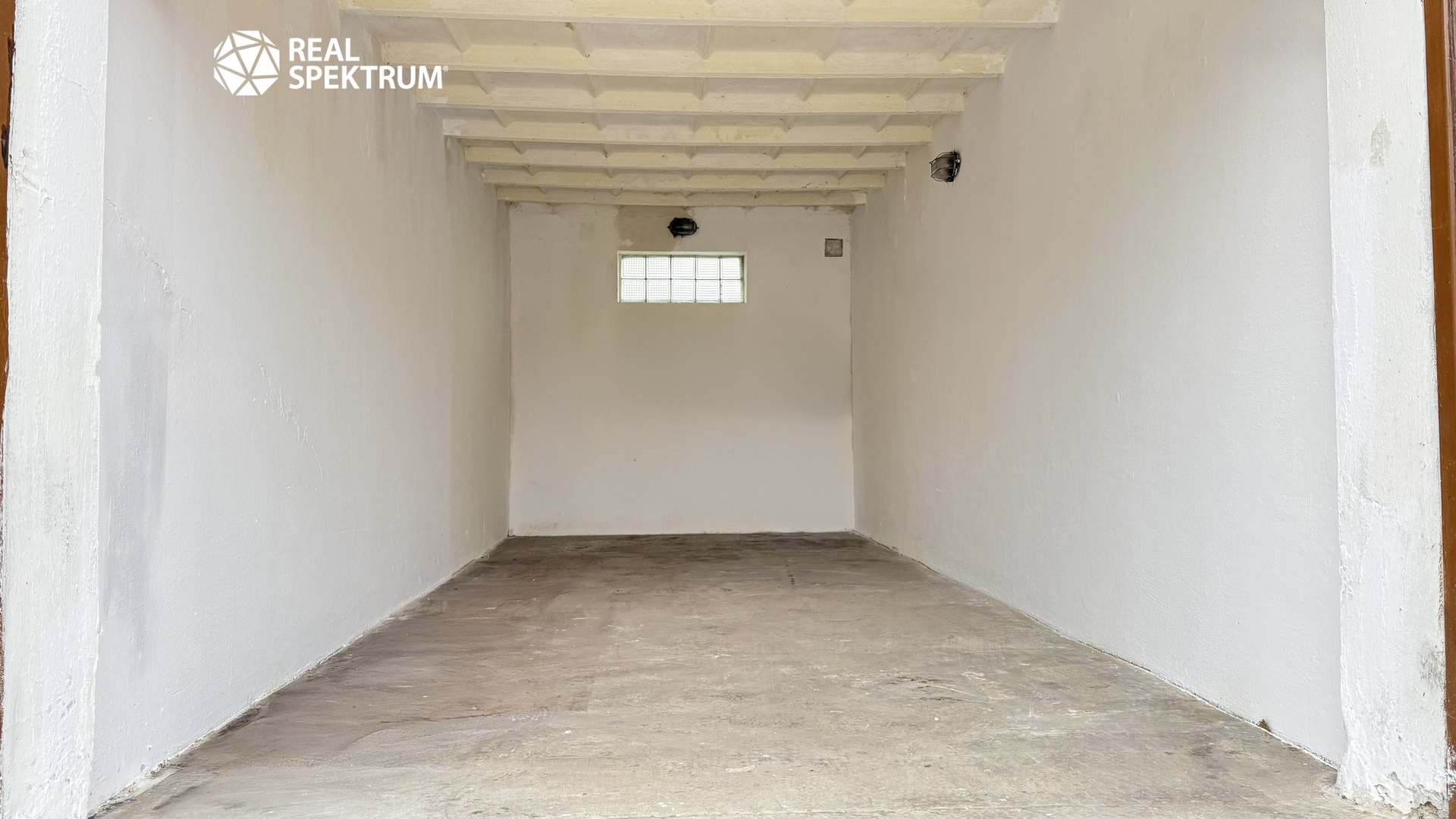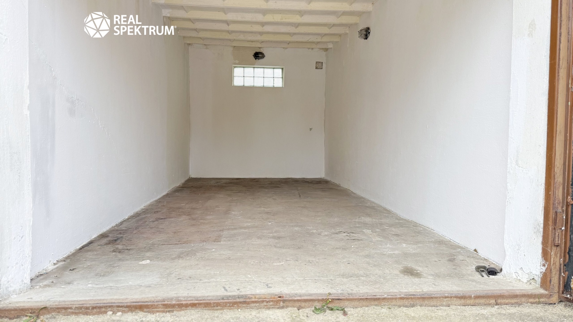 Vnitřní rozměry garáže jsou přibližně 5,8 m na délku a 2,6 m na šířku. Garáž má betonovou podlahu, plechová vrata a střechu s asfaltovou lepenkou. Prostor je suchý, čistý a bez připojení elektřiny, která je však v garáži již rozvedena a lze ji jednoduše připojit. Přístup je zajištěn po obecní komunikaci.