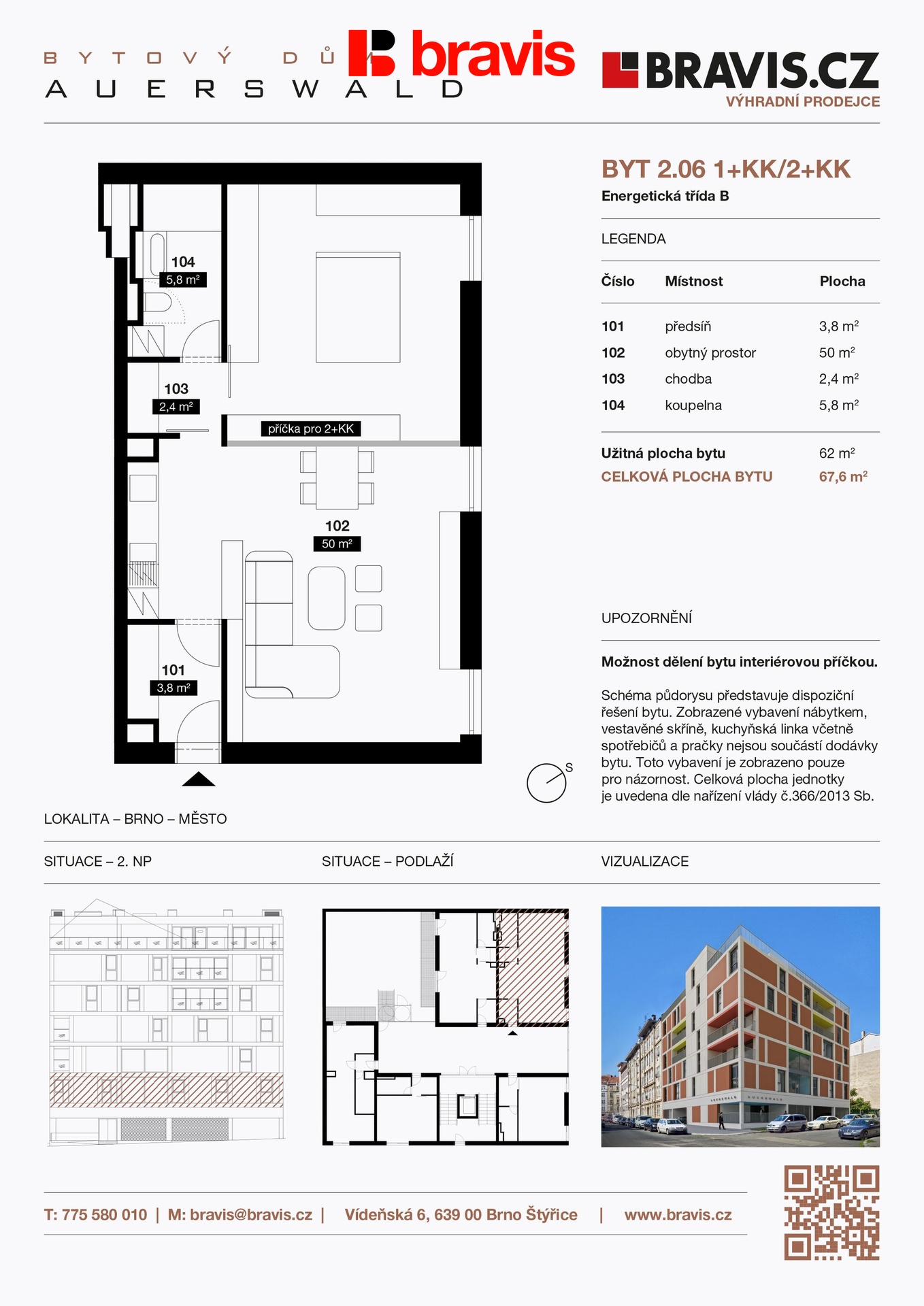| Dispozice/podlahová plocha: | 2+kk/68 m² |