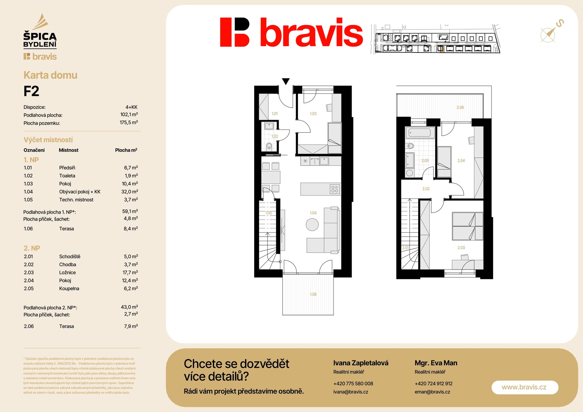 Představujeme Vám výjimečný rodinný dvojdům č.F2 o dispozici 4+kk s podlahovou plochou 102,1 m², který je součástí prestižního rezidenčního projektu Špica bydlení Tuřany. Tento dům je ideální volbou pro rodiny, které hledají kvalitní bydlení v harmonickém prostředí s dokonalou dostupností všech služeb a centra Brna.