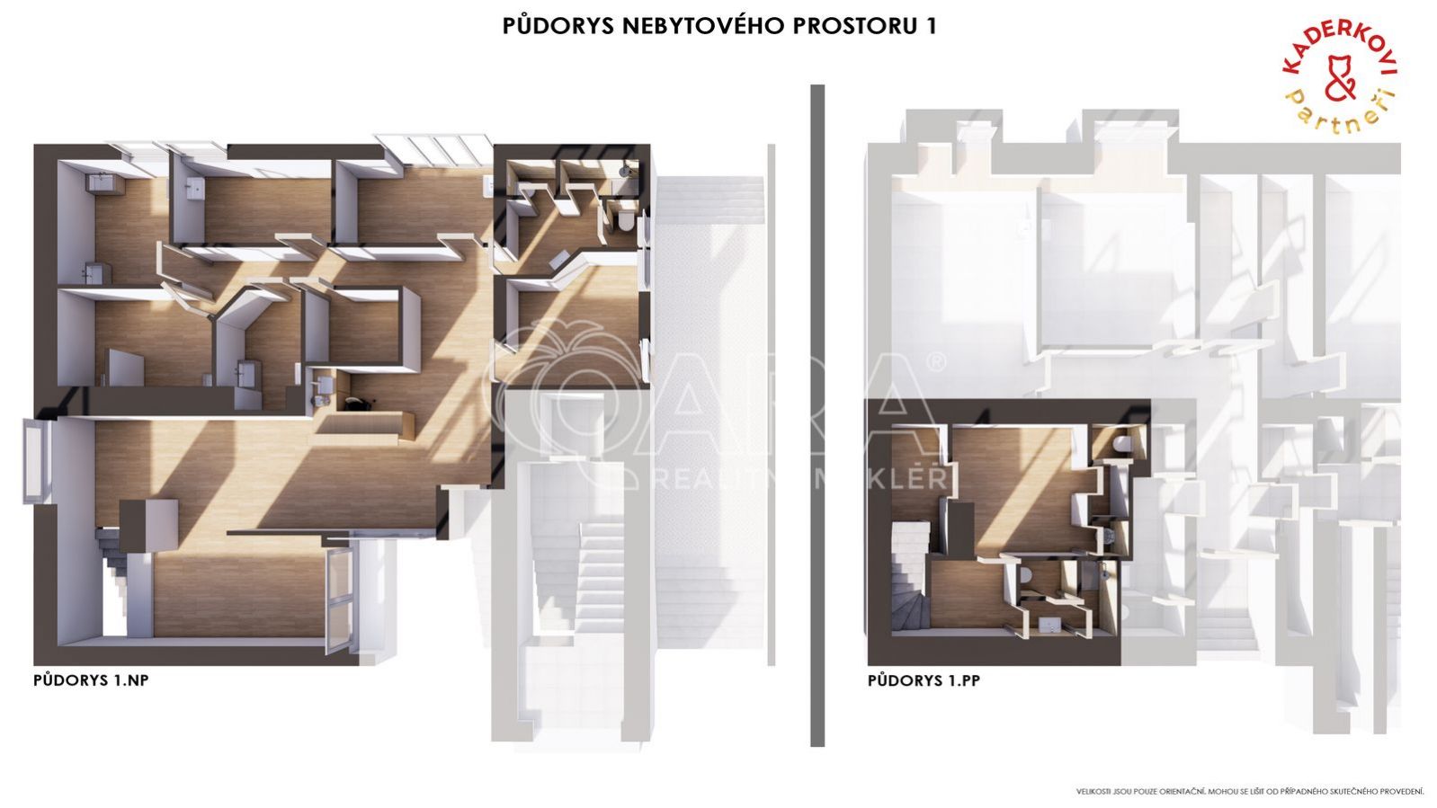 Uvedené výměry jsou orientační. Uvolnění prostor dle domluvy s majitelem.