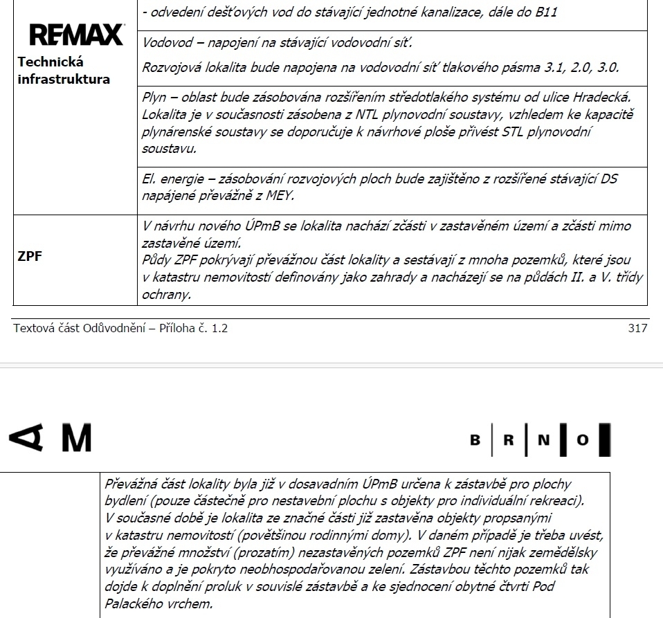 V tuto chvíli je pozemek v návrhové ploše určené k bydlení, nicméně do dané lokality není zavedena žádná dopravní a technická infrastruktura, což možnost okamžité realizace komplikuje. Počítá se s tím, že se vlastníci jednotlivých pozemků domluví a infrastrukturu tak, aby bylo možné pozemky zastavět, realizují na své náklady. Prodávající si vyhrazuje právo vybrat kupujícího na základě jím zvolených kritérií.