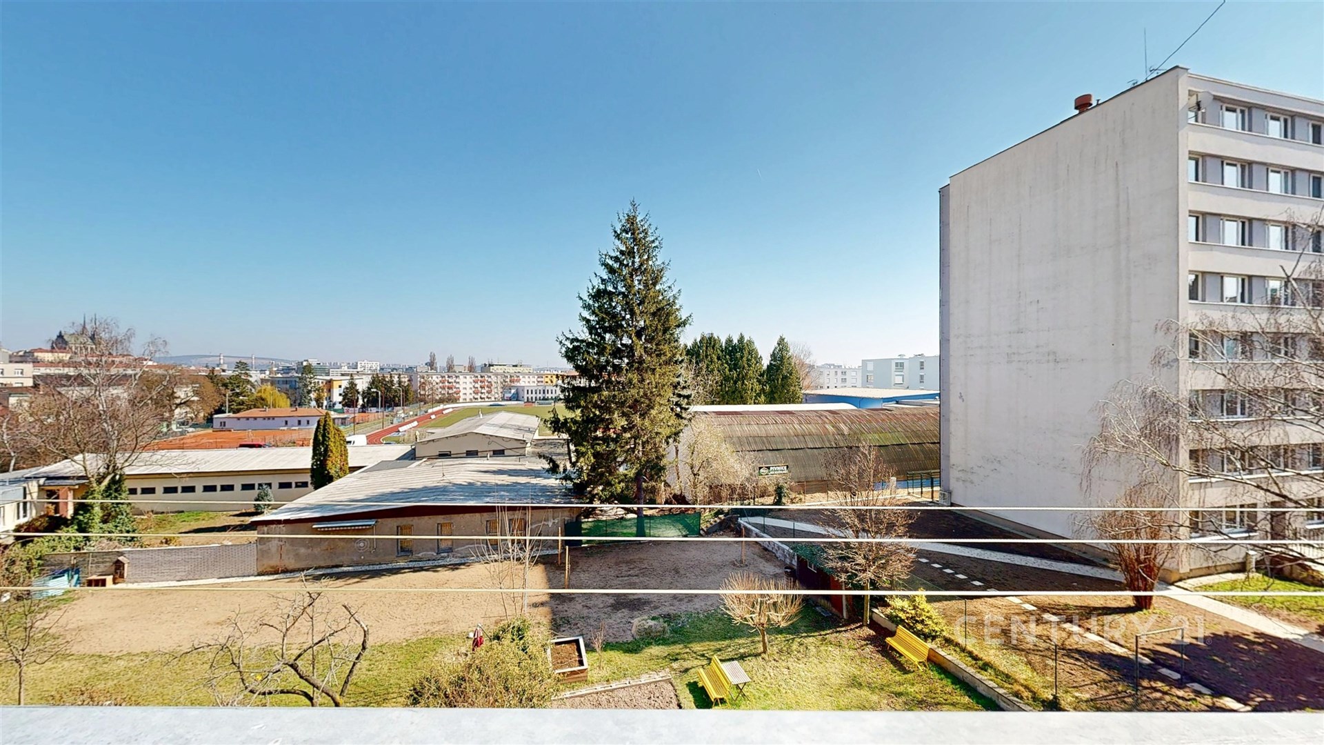 Kompaktní dispozice bytu nabízí samostatné vstupy z prostorné haly do všech pokojů, šatny, rekonstruované koupelny a odděleného WC. V případě potřeby lze zpřístupnit nyní sádrokatronem zaslepené dveře mezi místnostmi 5 a 6 (viz 3D plánek ve fotografiích). Z kuchyně se pak vstupuje na terasu s nádherným výhledem na Petrov, Špilberk a stadion SK Moravská Slavia Brno.