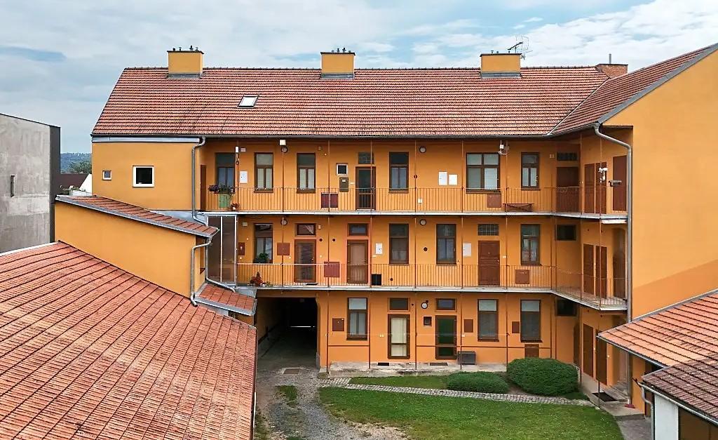 Dům disponuje velkým průjezdem s přímým vstupem z ulice, za kterým se nachází dvorní objekty využívané jako garáže, sklady a dílna. Tento prostor může být snadno přetvořen dle potřeb nového majitele, rovněž tak velká půda nabízí možnost vestavby dalších bytů. Nemovitost je ve velmi dobrém technickém stavu a průběžně udržovaná. V rámci modernizací došlo k zateplení uliční fasády a štítů domu, instalaci nových plastových oken a vstupních dveří do bytů, výměně střešní krytiny a klempířských prvků, obnově rozvodů elektroinstalace, vody a kanalizace. Dům je napojen na všechny dostupné technické sítě a splňuje současné požadavky na komfortní bydlení bez nutnosti zásadních rekonstrukcí.