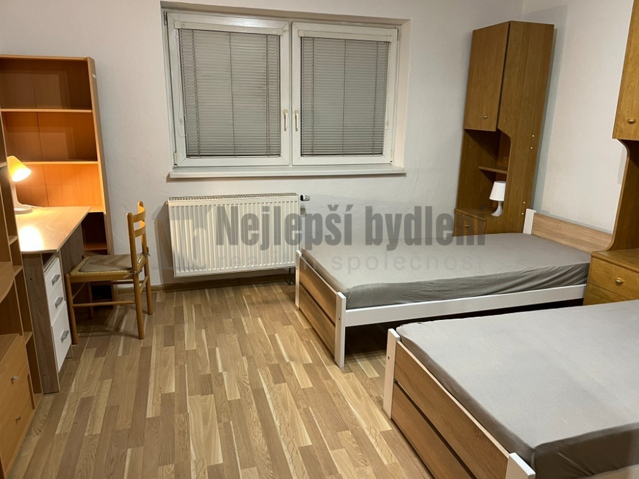 Nabízíme k pronájmu plně zařízený 3+1 v Obřanech na ul. Fryčajova, celé patro. Celková plocha činí 74m2 . Neprůchozí plně zařízené pokoje -2x dvoulůžkový, 1x jednolůžkový pokoj, kuchyňská linka, sedačka, stěna s TV, lednice s mrazákem, pračka, MVT, kombinovaný sporák, internet. Byt je připraven pro komfortní bydlení 4-5 mladých lidí - studentů. Veškerá občanská vybavenost v blízkosti, sportovní i kulturní vyžití, nákupní možnosti, restaurace, cyklostezka. MHD 50m. Doporučuji pro zájemce, kteří hledají příjemné a klidné bydlení.