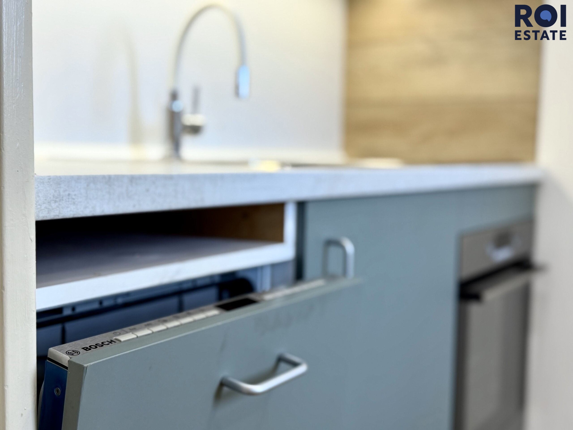 Kuchyň je vybavena kuchyňskou linkou včetně trouby, varné desky a myčky nádobí.