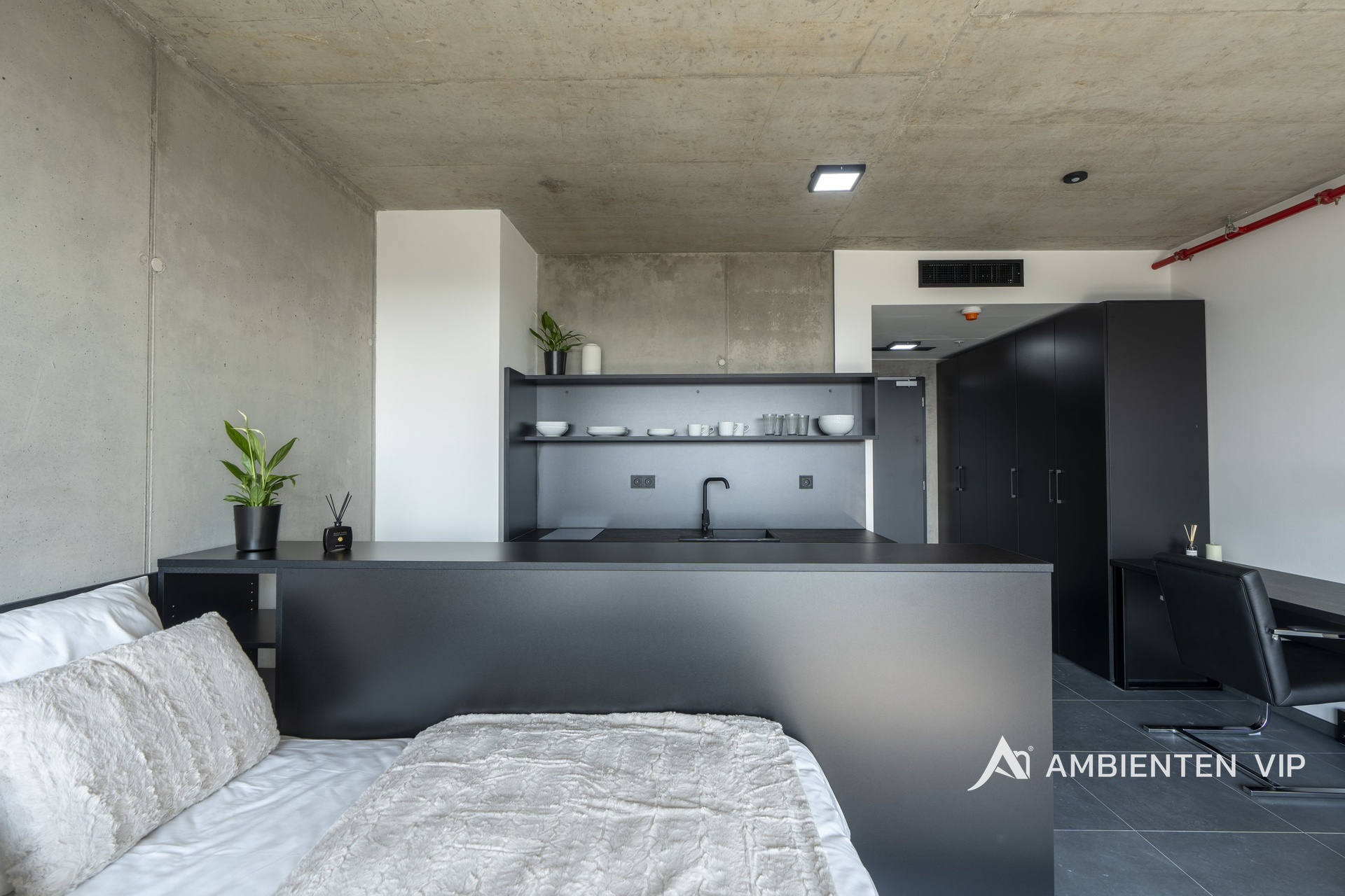 Standardem každé jednotky je plné vybavení zahrnující - postel o rozměru 160 × 200 cm a vestavěné úložné prvky, pracovní kout a barový pult, klimatizaci a venkovní žaluzie, systém chytré domácnosti Loxone, plně vybavenou kuchyň včetně myčky a nádobí. Celkový koncept vytváří harmonické a funkční prostředí ideální pro moderní městský život.