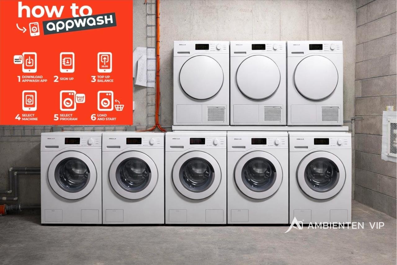 moderní prádelna se spotřebiči značky Miele