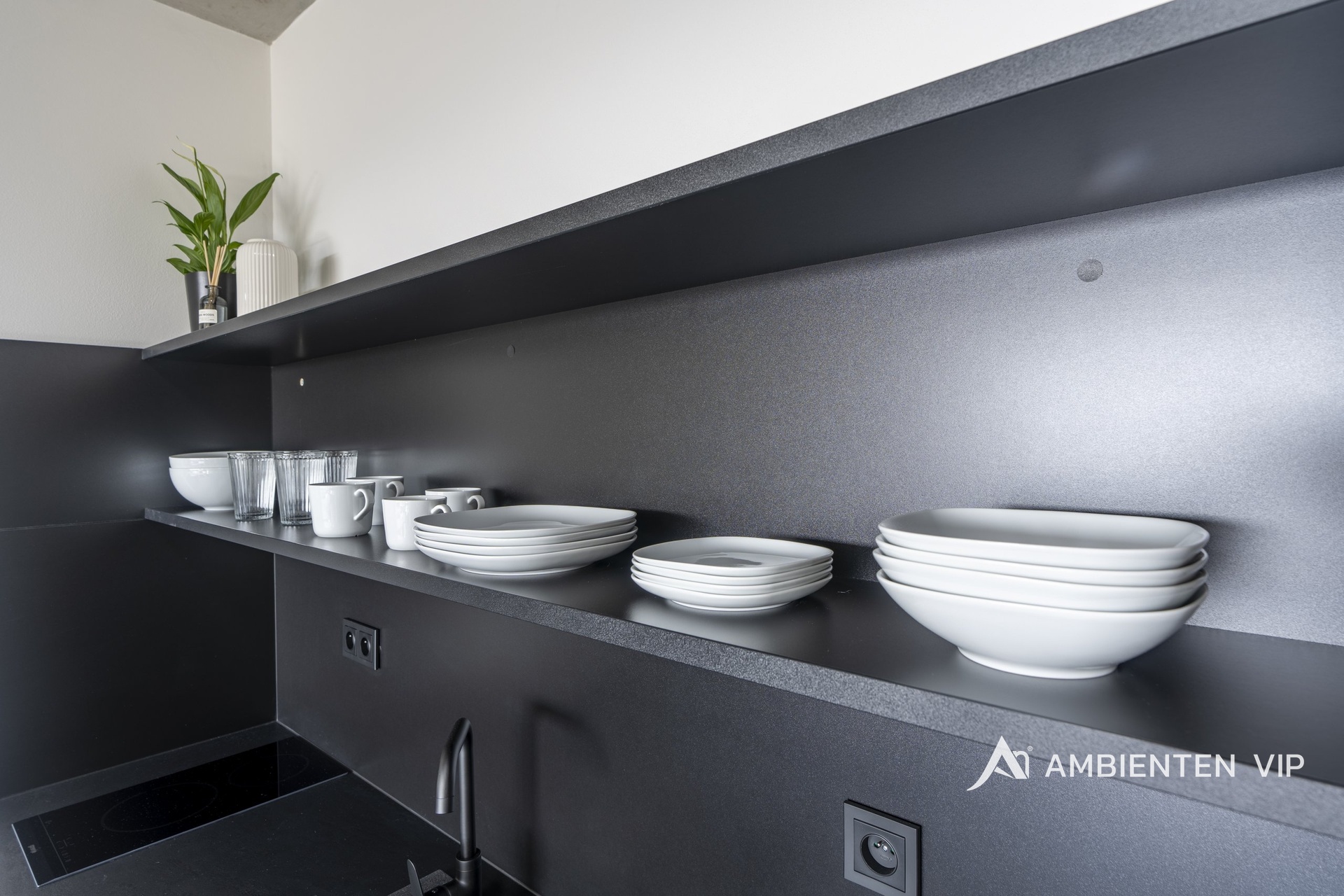 Standardem každé jednotky je plné vybavení zahrnující - postel o rozměru 160 × 200 cm a vestavěné úložné prvky, pracovní kout a barový pult, klimatizaci a venkovní žaluzie, systém chytré domácnosti Loxone, plně vybavenou kuchyň včetně myčky a nádobí. Celkový koncept vytváří harmonické a funkční prostředí ideální pro moderní městský život.