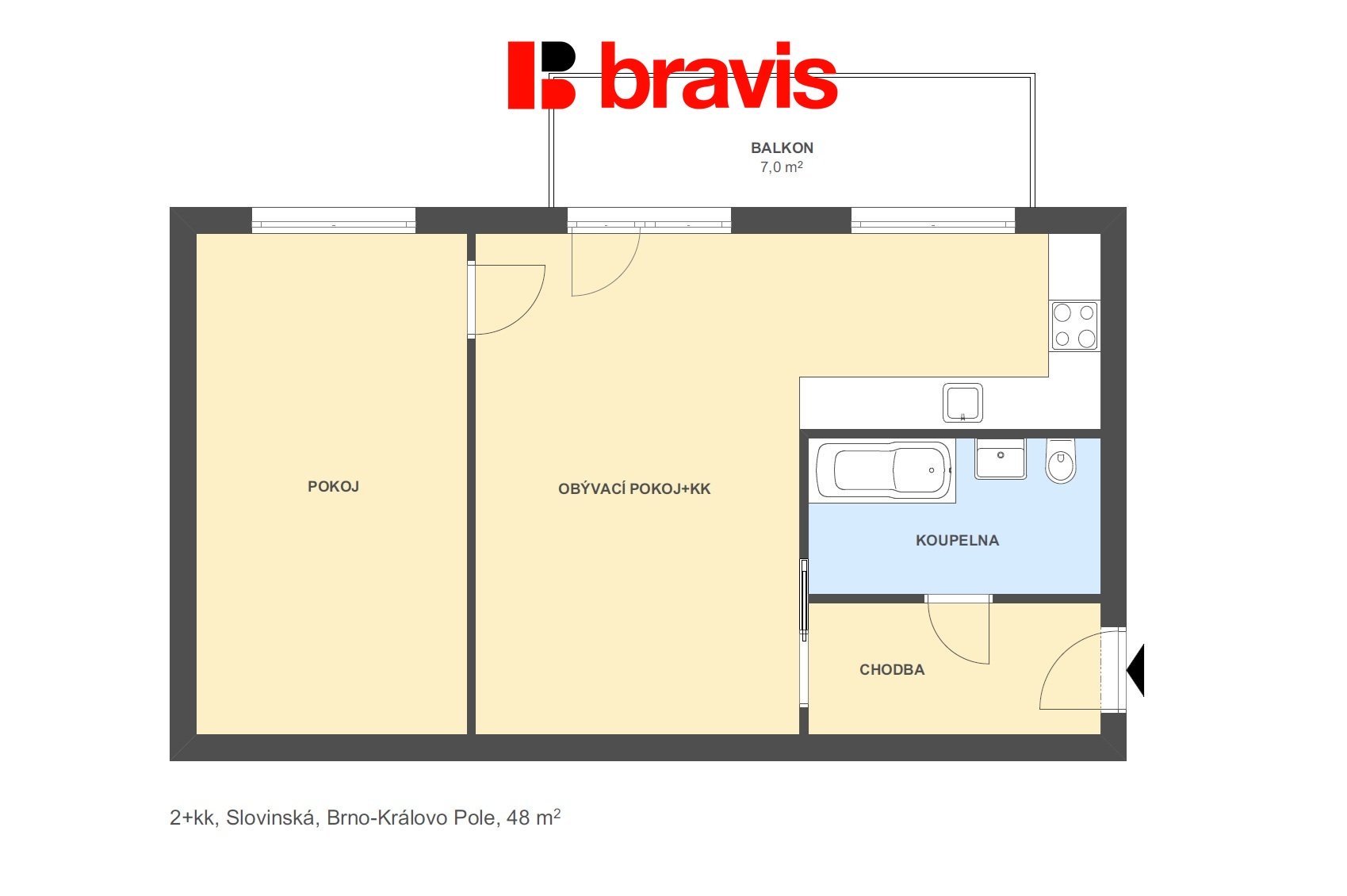 | Dispozice/podlahová plocha: | 2+kk/48 m² |