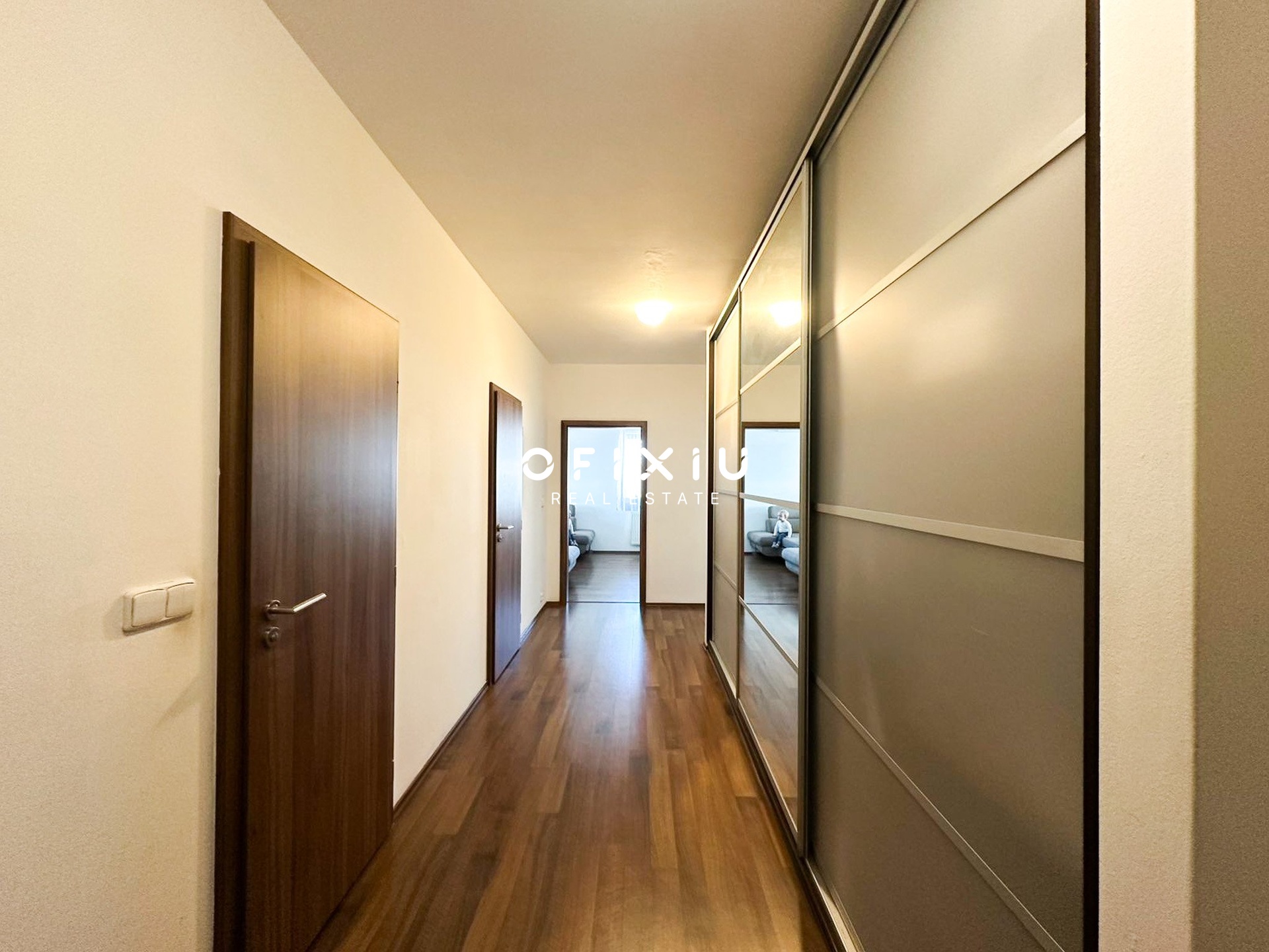 Byt dále disponuje dvěma samostatnými ložnicemi, které poskytují dostatek soukromí pro rodinu, pracovnu nebo pokoj pro hosty. Součástí bytu je také prostorná vstupní chodba s vestavěnou skříní, koupelna s vanou a samostatné WC.
