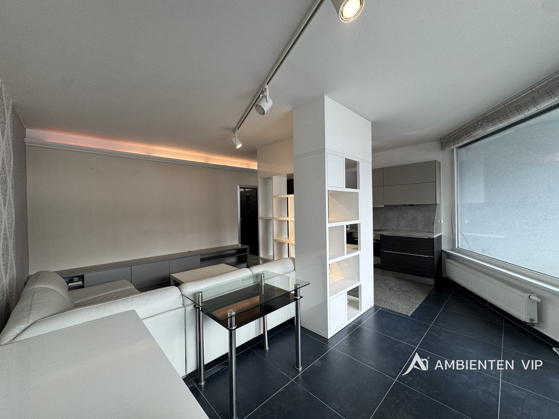 Prostorný byt o podlahové ploše 83 m2 s částečně krytou terasou se nachází ve 3.NP moderní budovy s výtahem. Byt disponuje ložnicí a pokojem, dále prostorným kuchyňským koutem s obývacím prostorem, z kterého je přímý vstup na terasu s pěkným výhledem na hrad Špilberk. Všechny pokoje jsou vybaveny nábytkem. Nájemník se tak může nastěhovat pouze s osobními věcmi a může ihned bydlet.