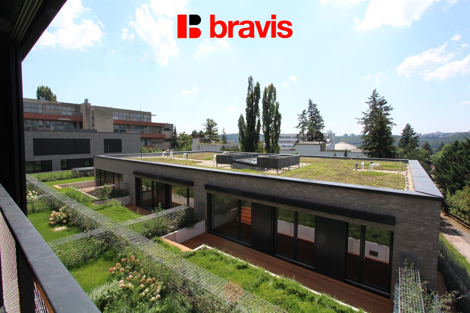 Byt se nachází v nově postaveném bytovém komplexu "Neumanka", který je umístěn na jižním svahu pozemku o rozloze 4.500 m2.