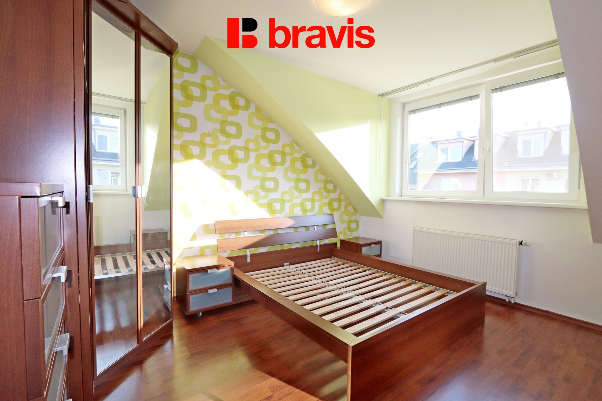 Pronájem moderního mezonetového bytu 3+kk, Brno Husovice - ul. Cacovická, 2x lodžie, parkovací stání
