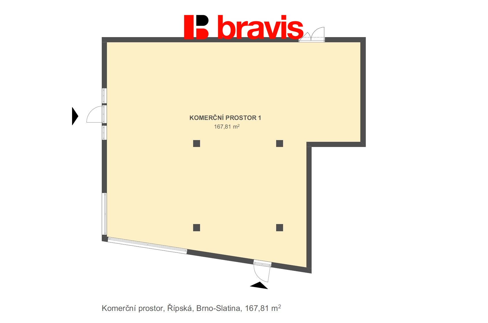 Pronájem obchodních prostor v projektu EAST GATE. Brno Slatina. Jednotka o 168m2