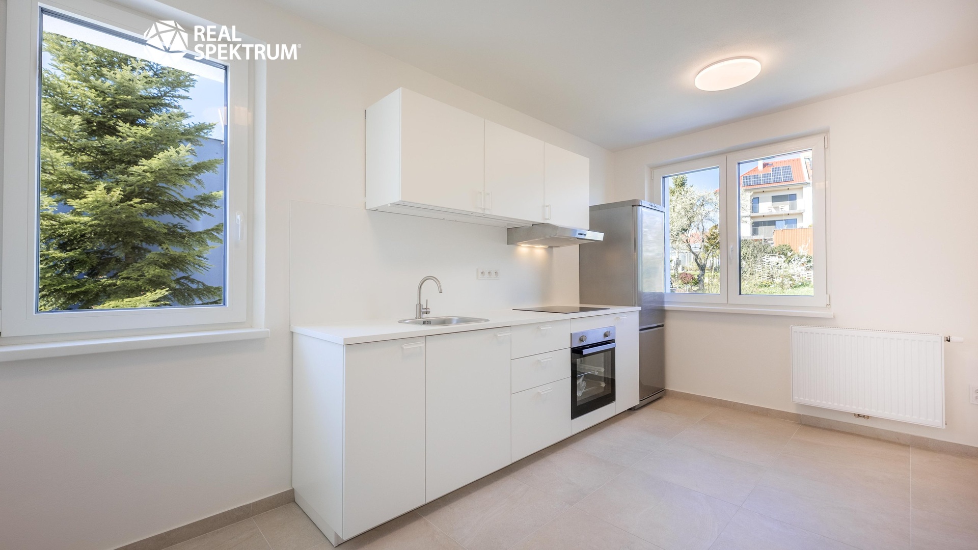 V přízemí se nachází samostatná bytová jednotka 1+kk o velikosti 31,2 m², vhodná například pro hosty, dospívající dítě nebo jako pracovní zázemí.