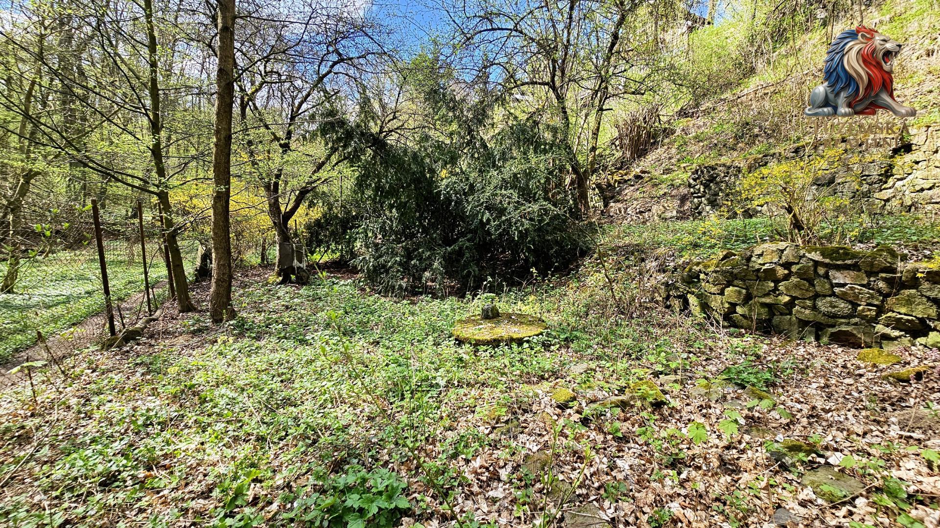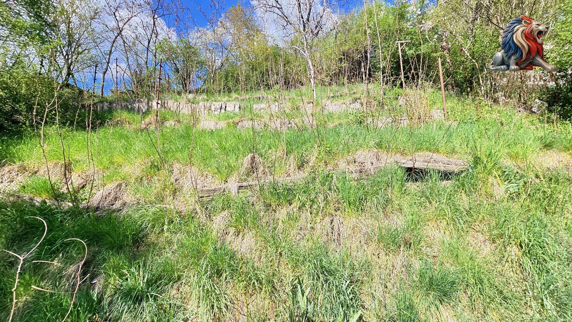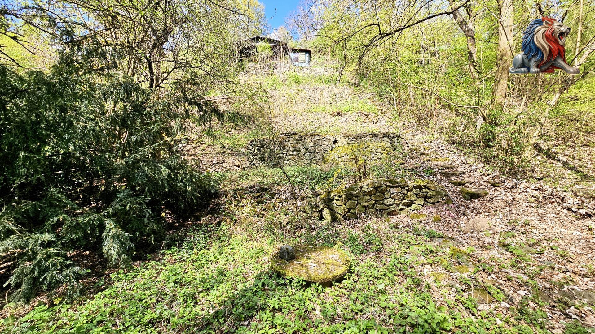 Pozemek je svažitý nakloněný jižním směrem, hezky na něj svítí slunce. Nahoře je hezký výhled, dole v údolí zase příjemný stín a klima. Po pravé straně pozemku jsou schůdky vedoucí nahoru k chatě a nad chatu. Po celé výšce jsou kaskády zpevněné zídkami vytvářející vodorovné plochy.