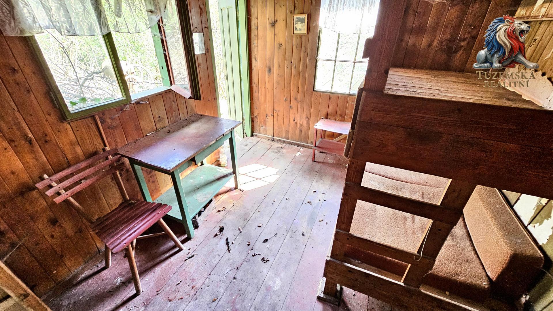 Chata umístěná v horní části je dřevěná a její stáří se odhaduje na cca 60 let. Dlouhou dobu je již neužívaná a jste to možná Vy, komu bude znovu dělat radost.