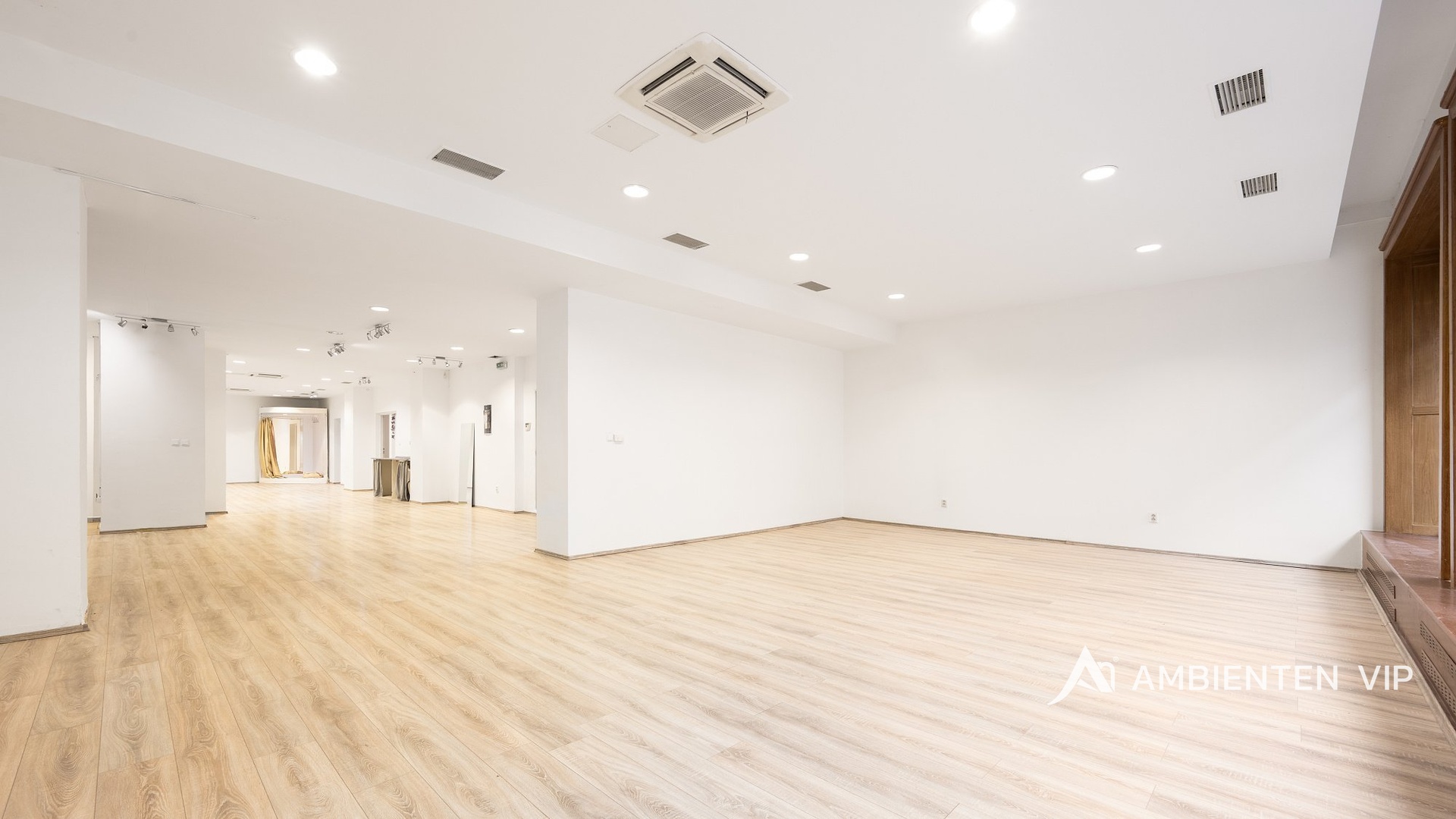 2. Nebytový prostor. Druhá část nebytové jednotky, dříve využívaná jako svatební salón, je přístupná ze společných prostor domu a nachází se ve 2. NP s výtahem. Celková výměra činí 214,3 m² + balkon 1,8 m². Dispozice zahrnuje: dva velké otevřené prostory, kancelář s vlastním sociálním zázemím a balkonem, druhou samostatnou kancelář, několik oddělených toalet a komoru. Prostory se vyznačují vysokými stropy, reprezentativním charakterem a variabilním využitím, vhodným pro kanceláře, showroom, služby či sídlo společnosti.