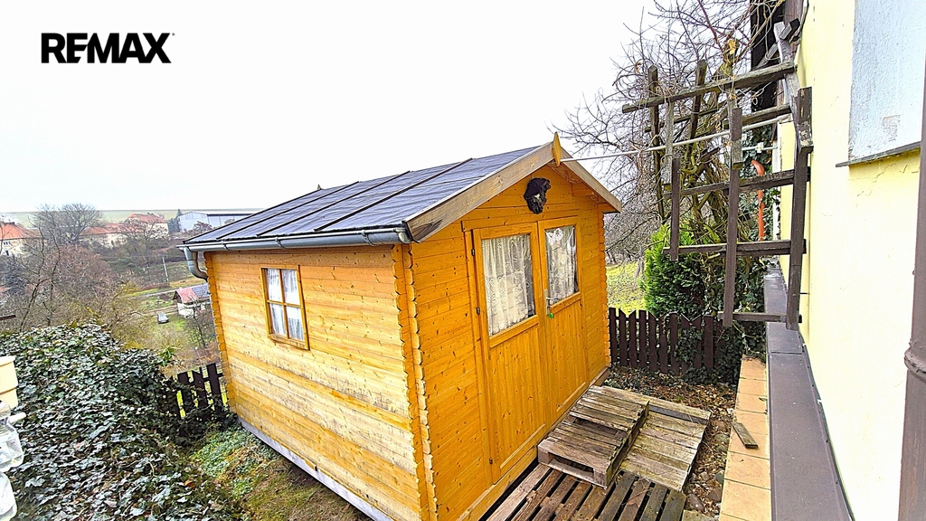 Na stavební parcele o výměře 595 m² se nachází hlavní rodinný dům o dispozici 3+1 a samostatný menší dům o dispozici 1+1 s obytnou plochou 36 m². Součástí zastavěné části je také garáž, dílna, kotelna a prostorná stodola, přičemž všechny tyto prostory jsou přístupné přímo z interiéru hlavního domu, což výrazně zvyšuje komfort užívání. Nemovitost je nepodsklepená, avšak nabízí nadstandardní množství úložných a technických prostor.