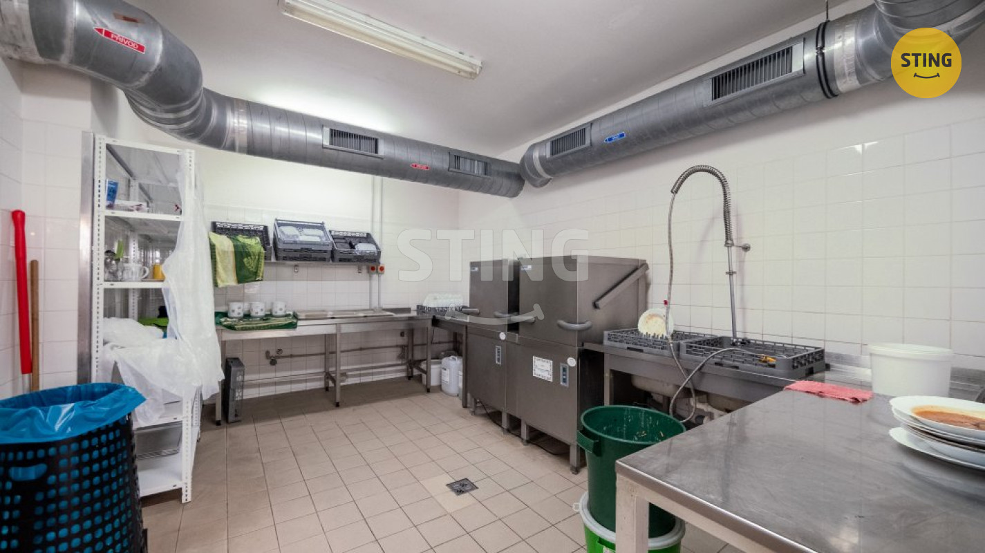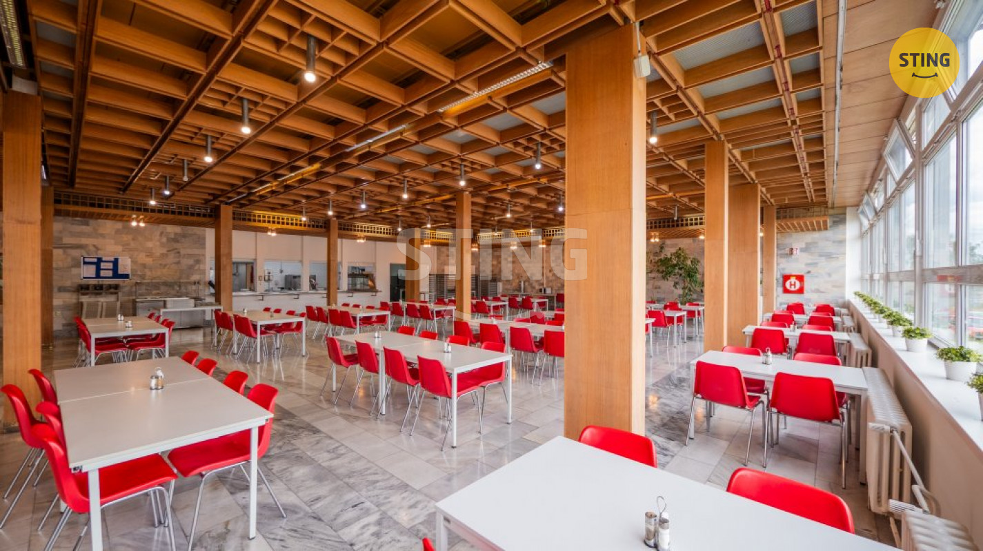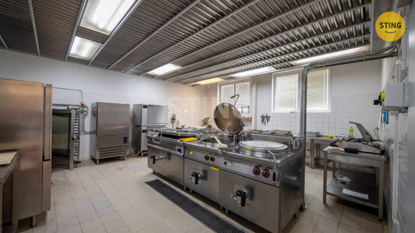 V suterénu (445 m²) se nachází sklepní prostory, archiv a kryt civilní obrany. Přízemí (1. NP, 616 m²) nabízí vstupní halu, ordinaci, bufet, jídelnu, plně vybavené kuchyně, prostory pro přípravu a skladování potravin, toalety a zázemí pro zaměstnance kuchyně. Ve vyšších patrech (2. NP – 402 m², 3. NP – 582 m², 4. NP – 544 m²) jsou k dispozici kanceláře různých velikostí, konferenční místnosti, toalety, šatny a menší kuchyňe pro zaměstnance.