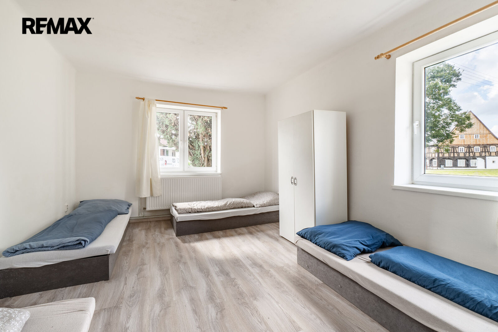 Nemovitost prošla rekonstrukcí na konci roku 2023 a nabízí podlahovou plochu 243 m². Díky svému rozsahu a dispozici poskytuje opravdu velkorysý prostor pro bydlení, vícegenerační soužití nebo spojení bydlení s podnikáním. V současnosti je objekt rozdělen do jedenácti pokojů s celkovou kapacitou 34 lůžek, takže je možné navázat i na stávající využití formou ubytování.