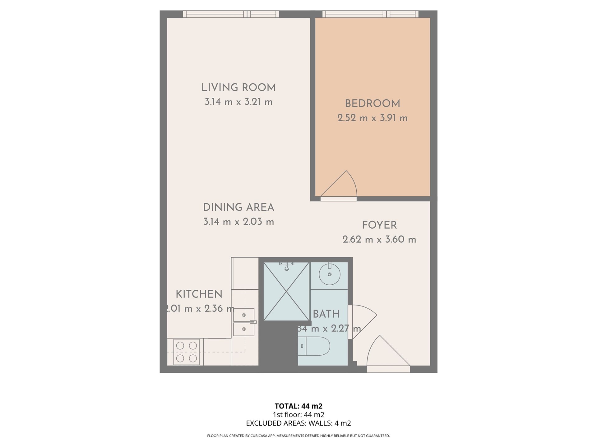 Dominantou bytu je útulný obývací prostor s kuchyňským koutem, který je plně vybavený a připravený na každodenní život i víkendové vaření. Ložnice nabízí dostatek soukromí a klidu pro odpočinek. Koupelna se sprchovým koutem a toaletou je řešena prakticky a elegantně.
