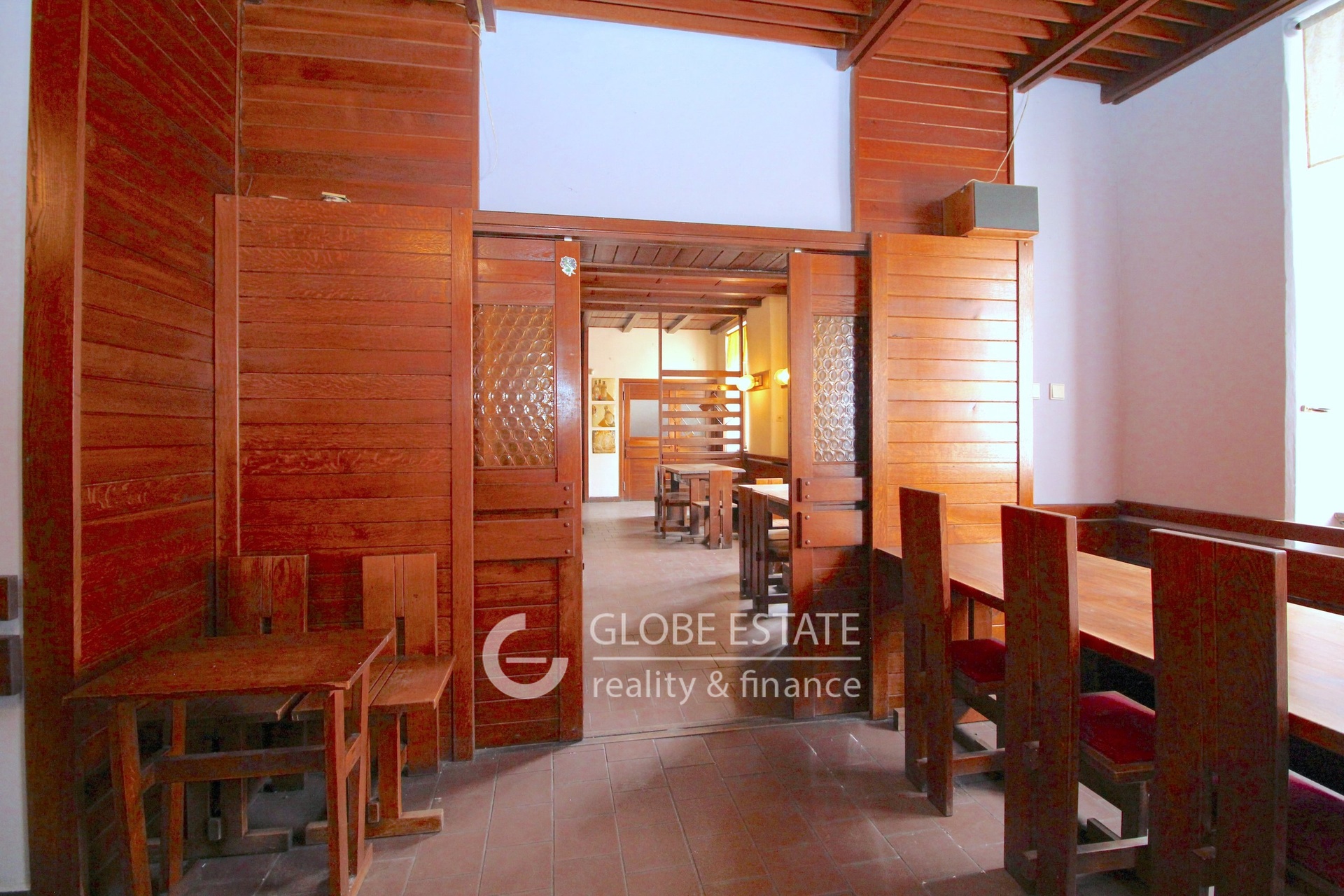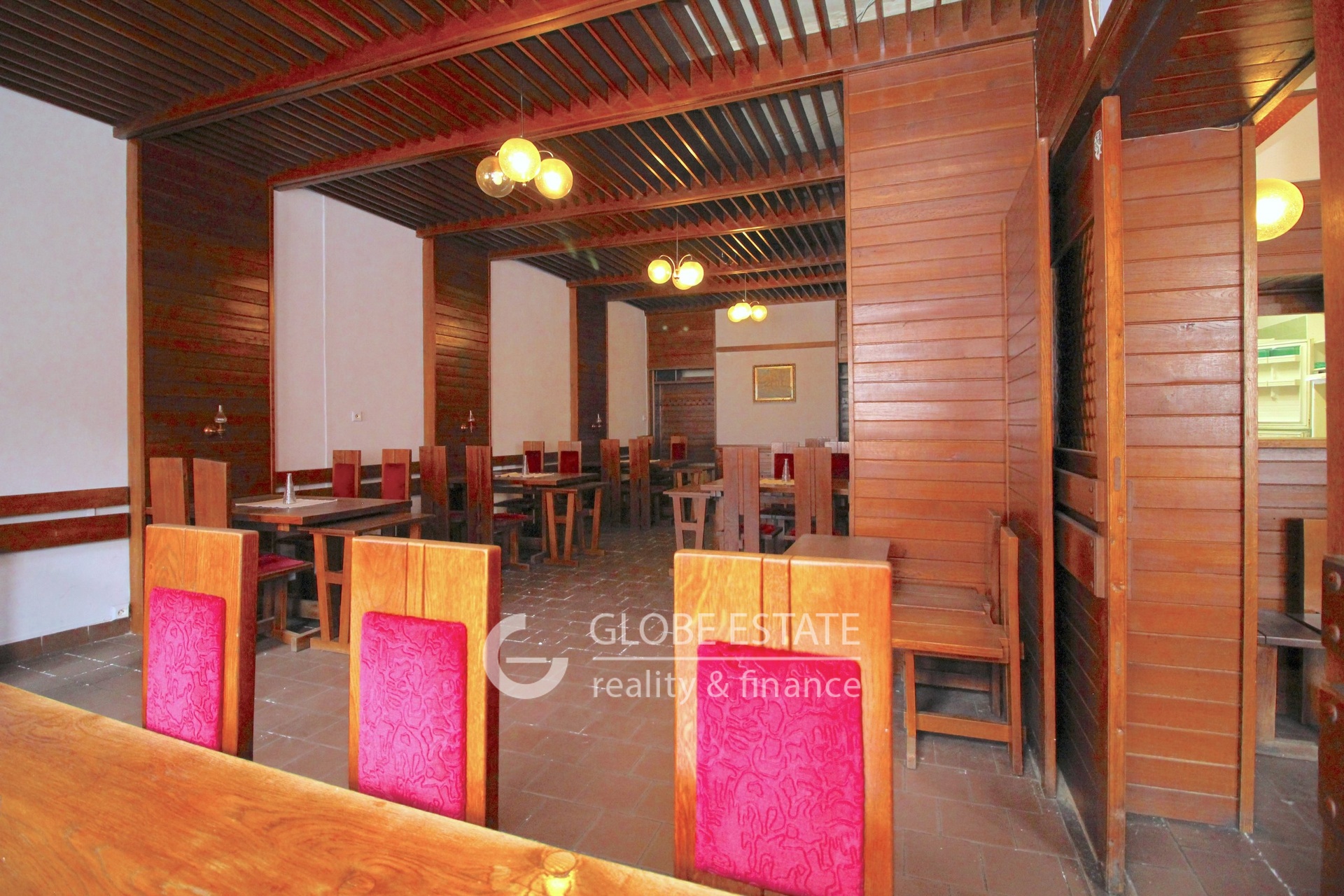 Současná struktura komplexu nabízí obrovskou flexibilitu a potenciál. Naleznete zde restauraci o velkorysé ploše přibližně 170 m2 a klep cca 60 m2, útulnou vinárnu o 55 m2, a dále kancelářské prostory o velikosti zhruba 60 m2, které disponují vlastním vstupem přímo z hlavní ulice, což je ideální pro viditelnost a dostupnost. Dále jsou k dispozici sklady a venkovní toalety o celkové ploše cca 55 m2, které doplňují funkčnost celého areálu.