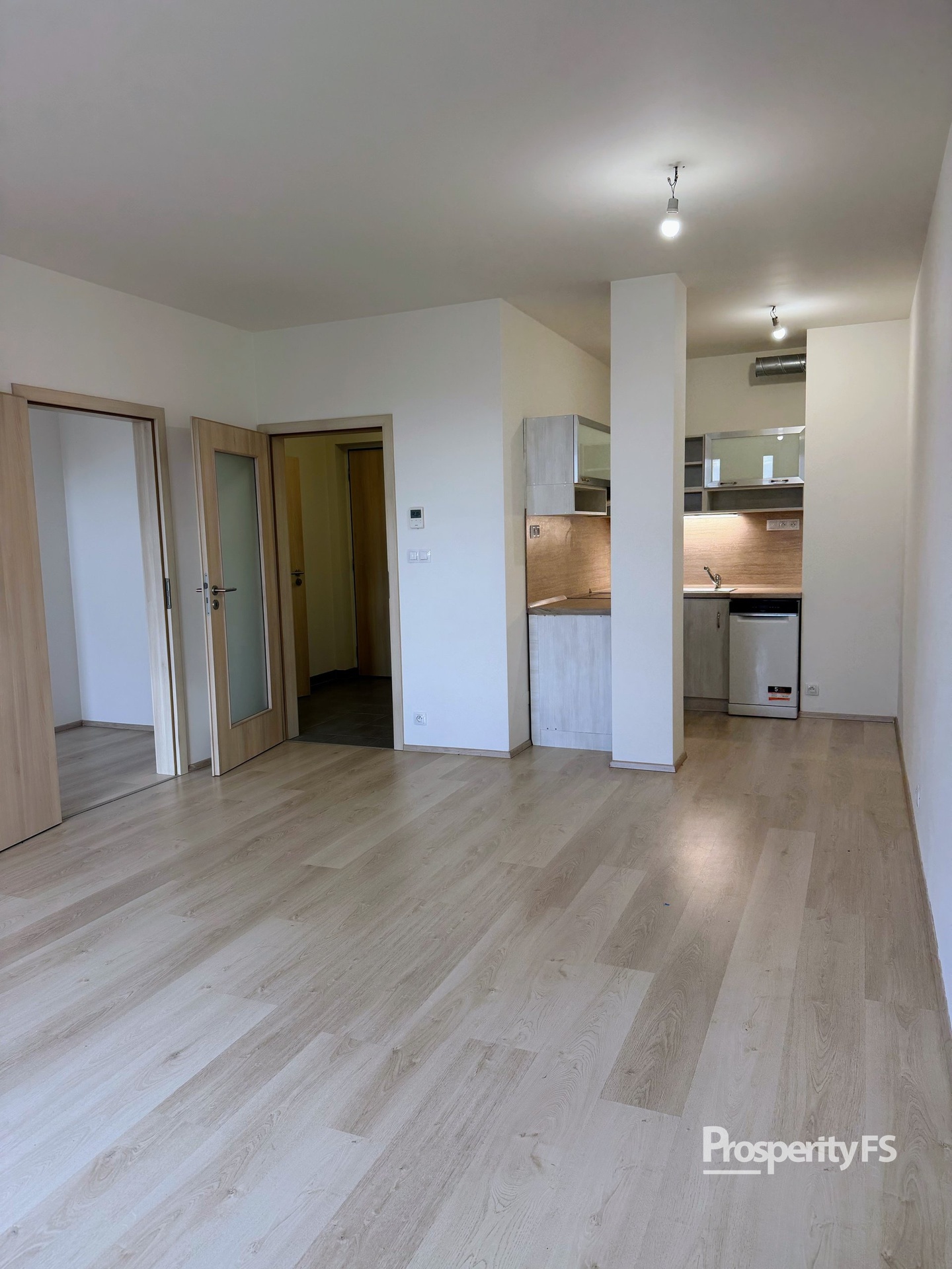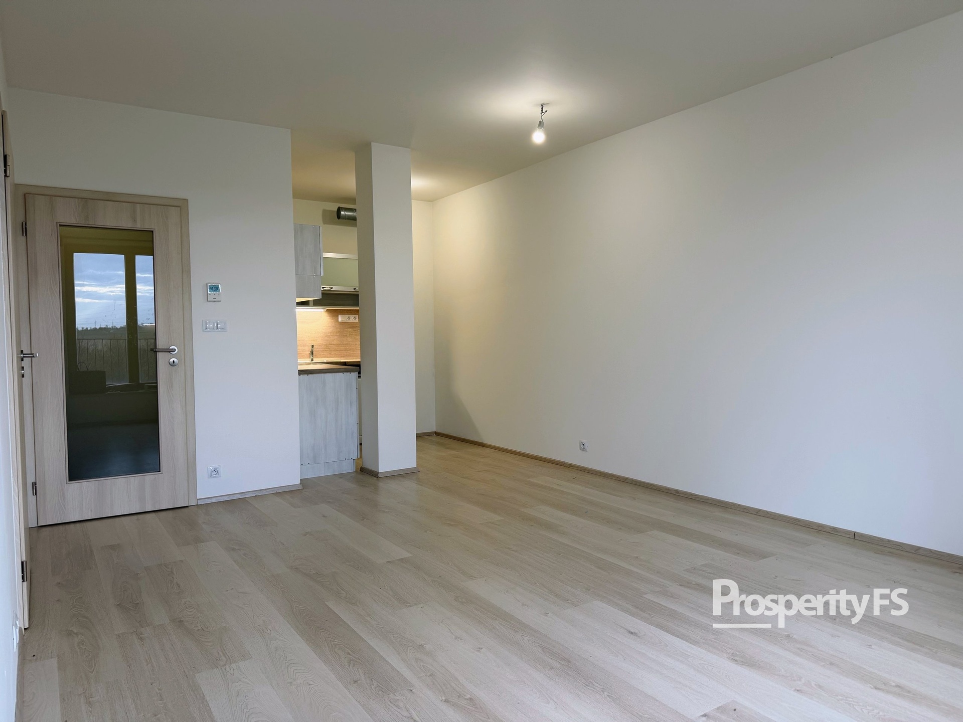 Hlavní výhodou bytu je jeho vzdušnost a praktická dispozice. Obývací pokoj s kuchyňským koutem je vybaven kuchyňskou linkou se sporákem, digestoří a myčkou. Jinak je byt nezařízený, což umožňuje přizpůsobit si interiér podle vlastních představ.