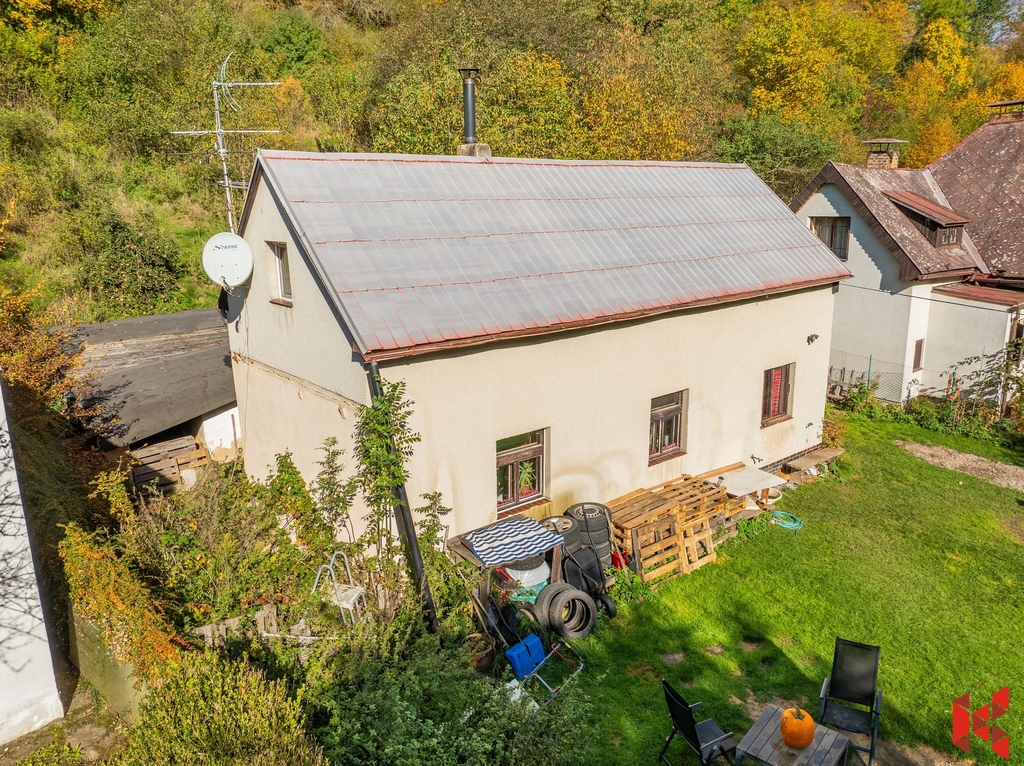 Zahrada za domem má výměru 306 m2, leží ve stráni a má terasovitý charakter. Přední zahrada, na které stojí dům, dvorek a drobné přístavby, je mírně svažitá s plochou krásných 700 m2.