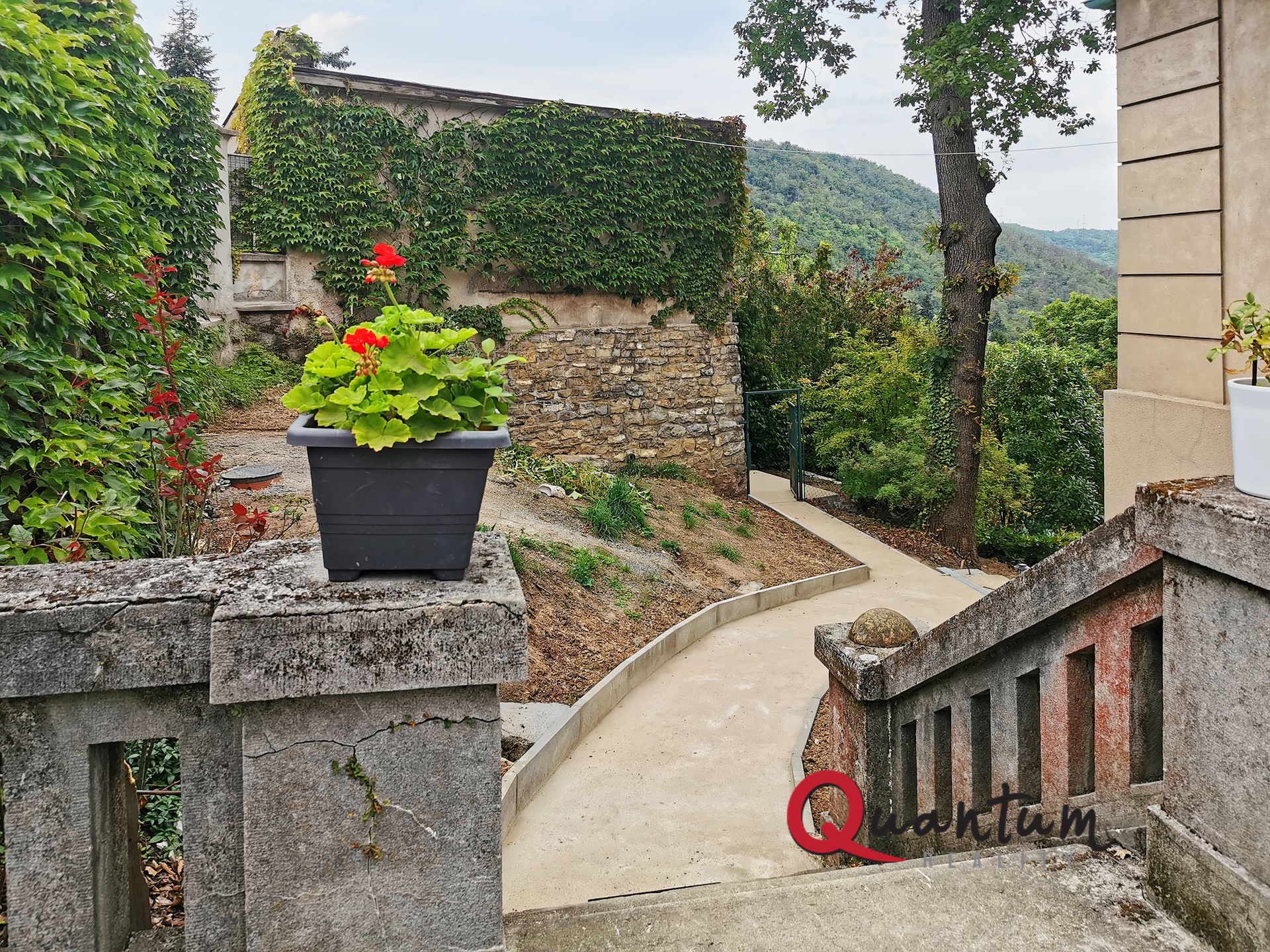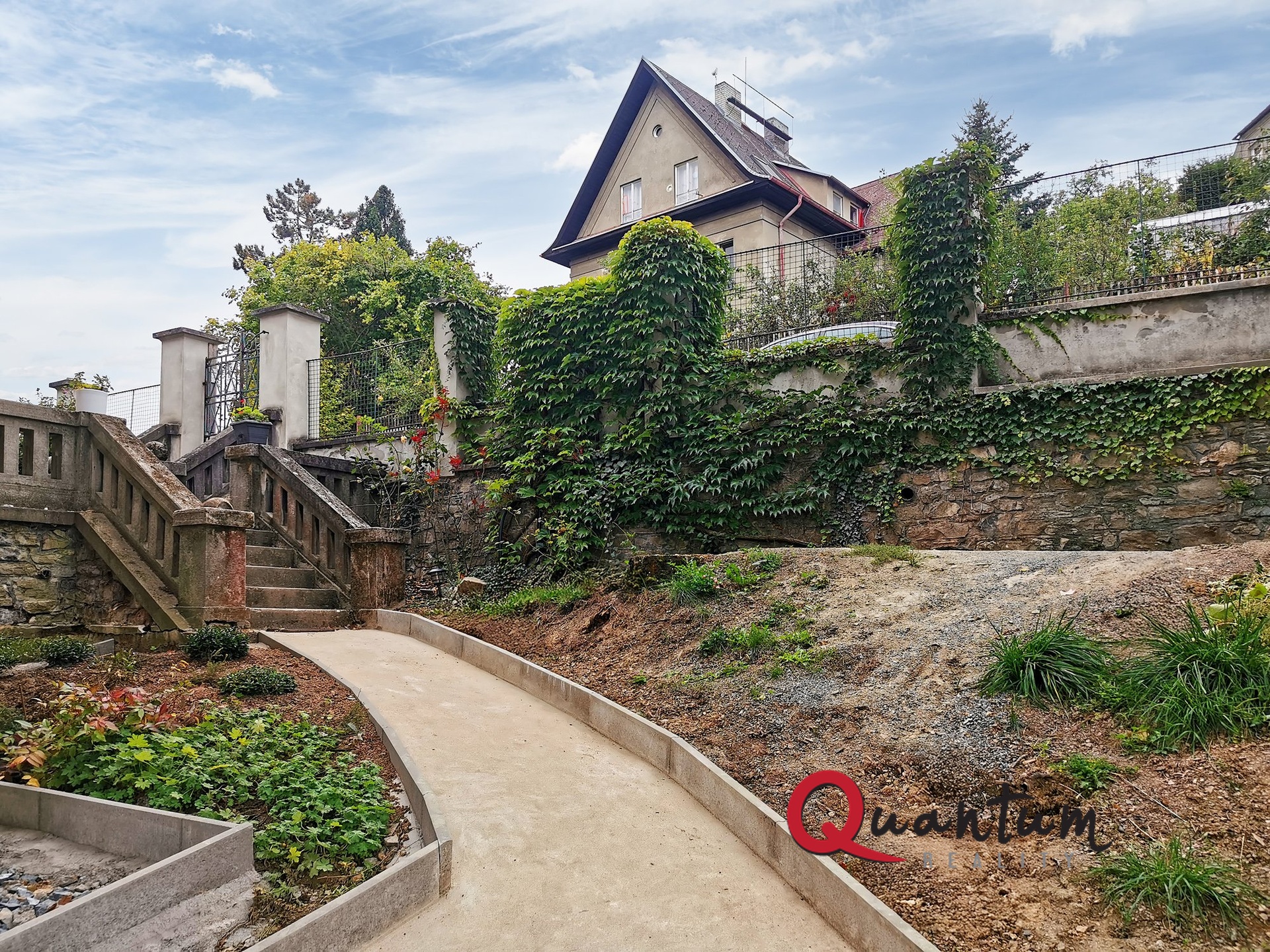 Nabízená bytová jednotka je orientována do zahrady. Před samostatným vstupem z boku vily je terasa, která prošla letos kompletní rekonstrukcí, včetně nové dlažby a zábradlí. Díky svažitému pozemku je umístění bytu z pohledu ze zahrady v 1. patře. Podlahová plocha jednotky je 39 m2 + terasa 7 m2.