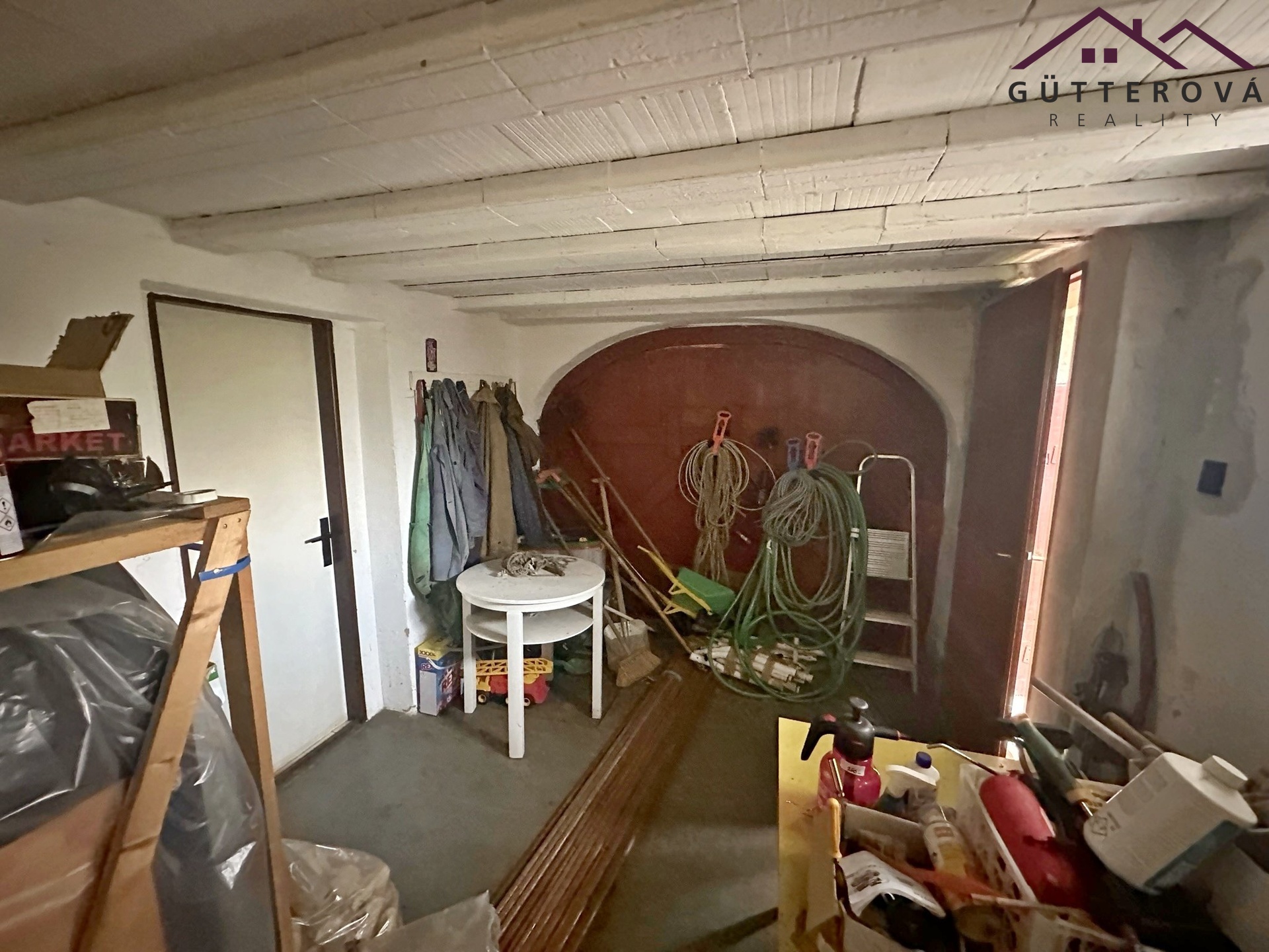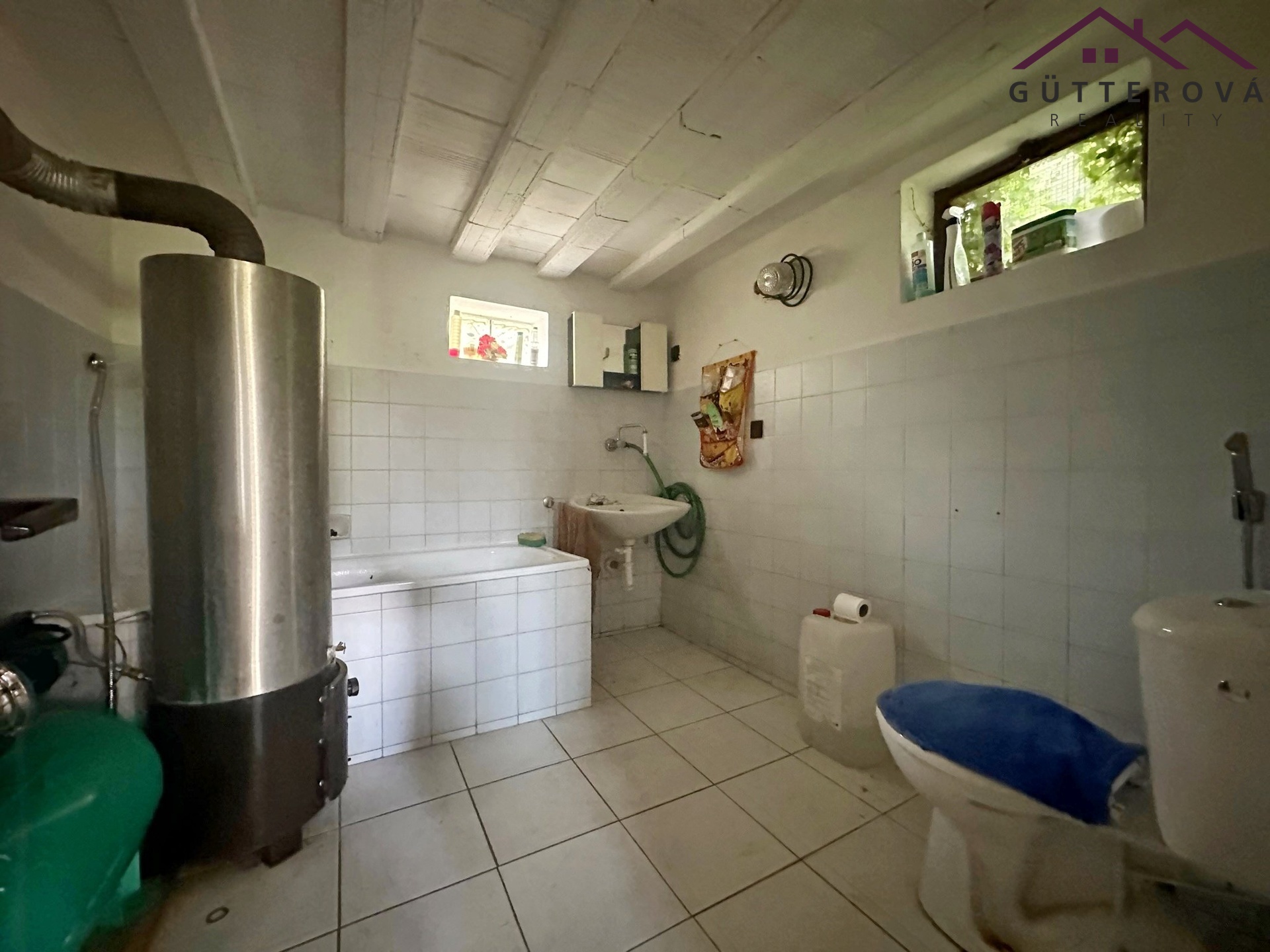 V prvním podlaží je vybudována letní kuchyně, garáž, koupelna s vanou a WC.