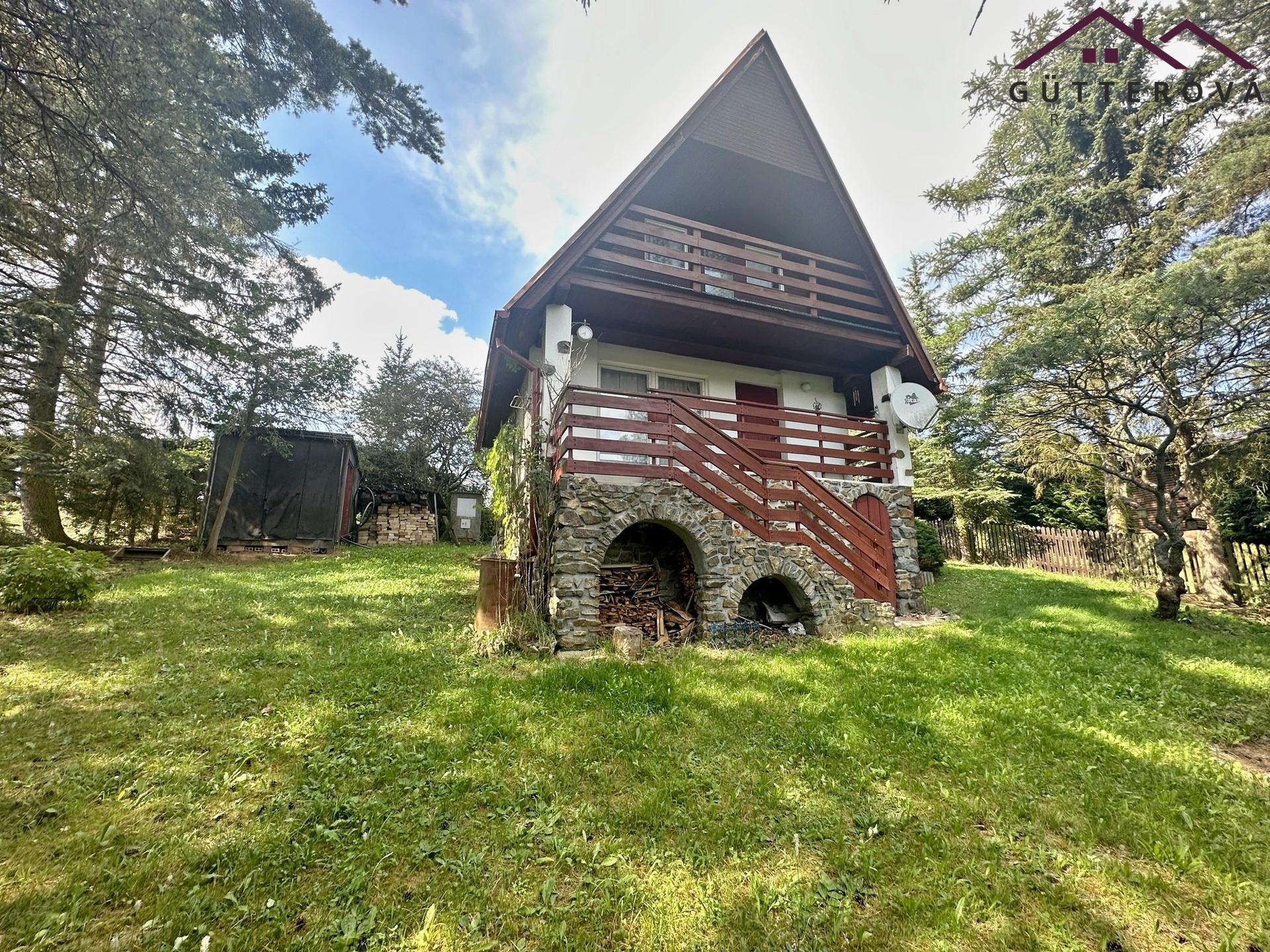 Chata z roku 1988 je umístěna na vlastním, mírně svažitém pozemku o celkové výměře 636 m2.