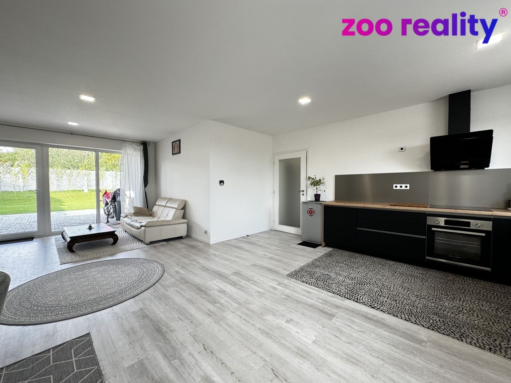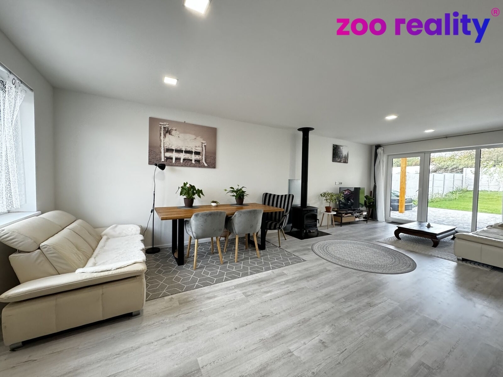 Interiér domu o užitné ploše 115 m² nabízí dostatek prostoru pro rodinné a volnočasové aktivity dětí. Najdeme zde vstupní předsíň, obývací pokoj s kuchyňským koutem a vstupem přes zastřešenou terasu na zahradu. Dále je k dispozici technická místnost, kde je prostor pro pračku a sušičku a z centrální chodby vedou dveře do třech pokojů, do koupelny, ve které nechybí vana, sprchový kout, umyvadlo ani WC a dále je k dispozici samostatná toaleta.