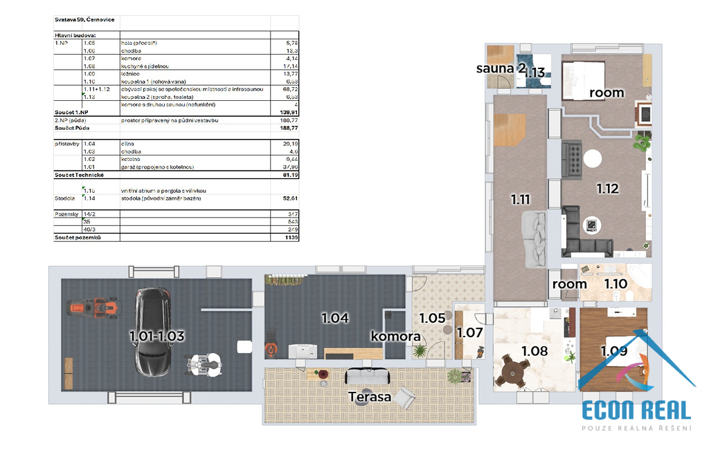 - Plocha parcely: 1139 m²
