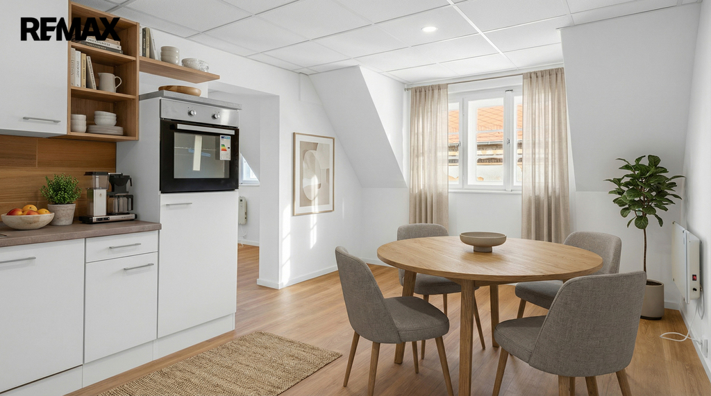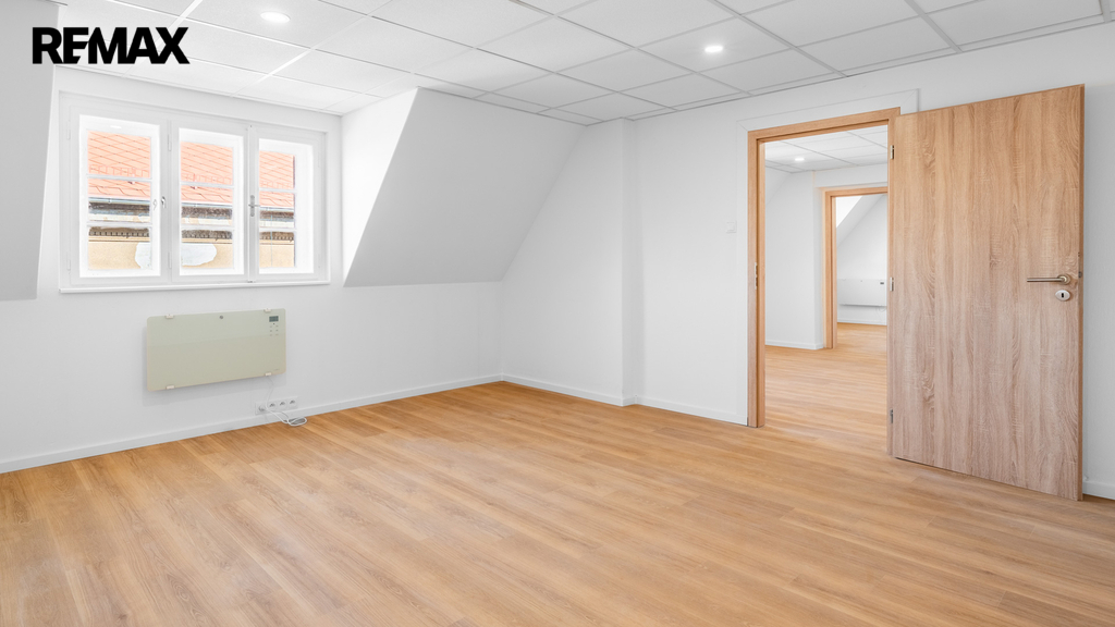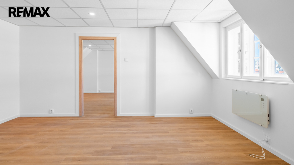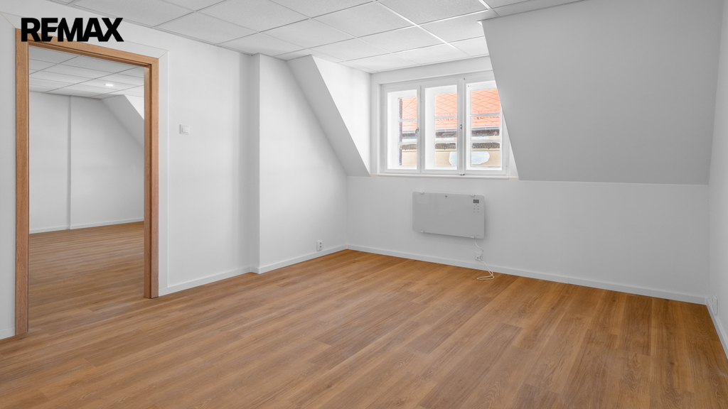 Byt prošel rekonstrukcí, včetně položení nových podlah a renovací oken. Dispoziční řešení bytu je patrné z přiloženého půdorysu. Interiér nabízí podkrovní charakter s dostatkem světla.