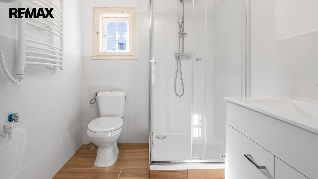 Zvláštností bytu je koupelna, které také prošla modernizací a je umístěná mimo bytovou jednotku, na chodbě domu. Toto řešení může vyhovovat těm, kteří preferují oddělený sanitární prostor mimo hlavní obytnou část.