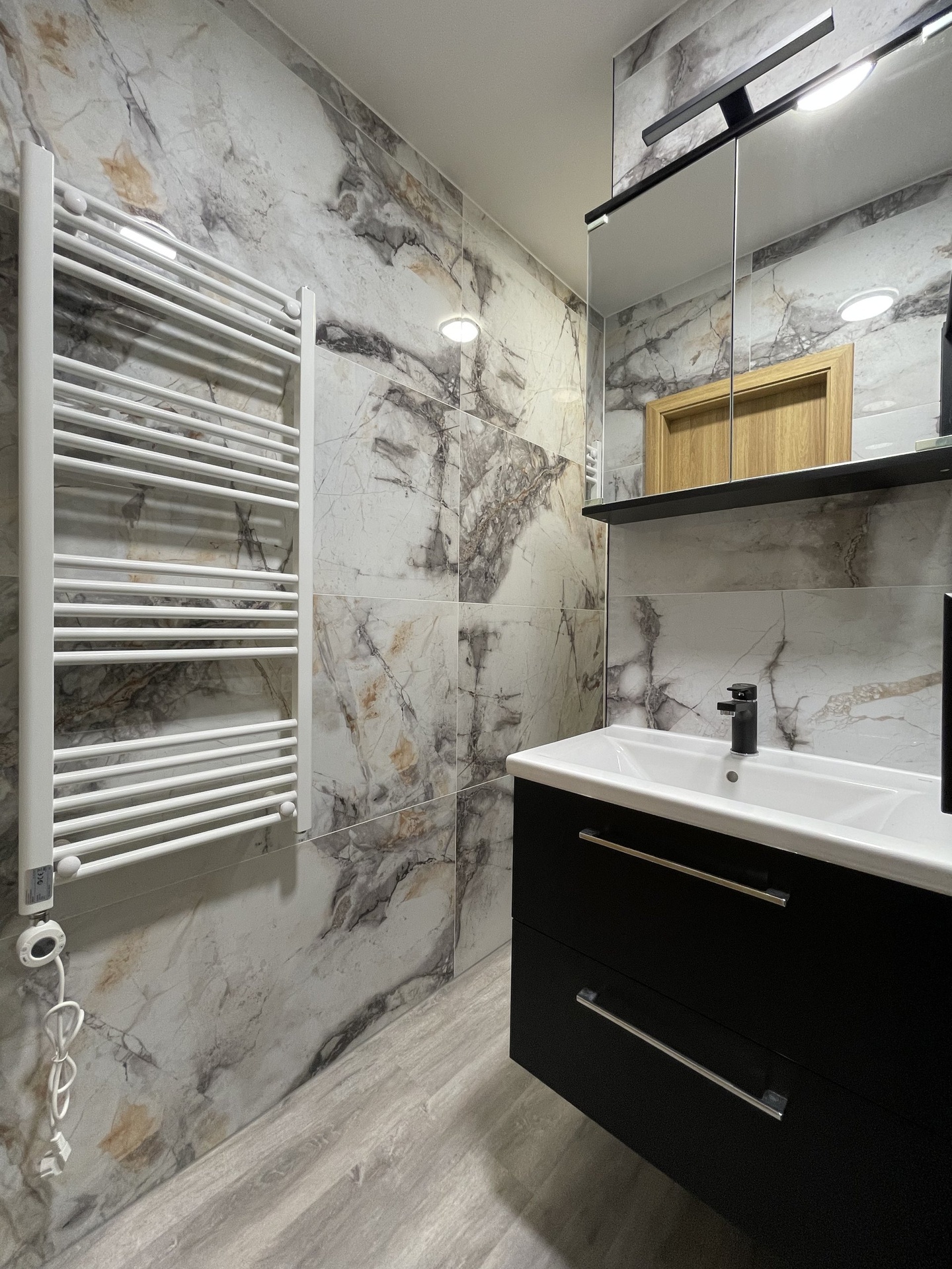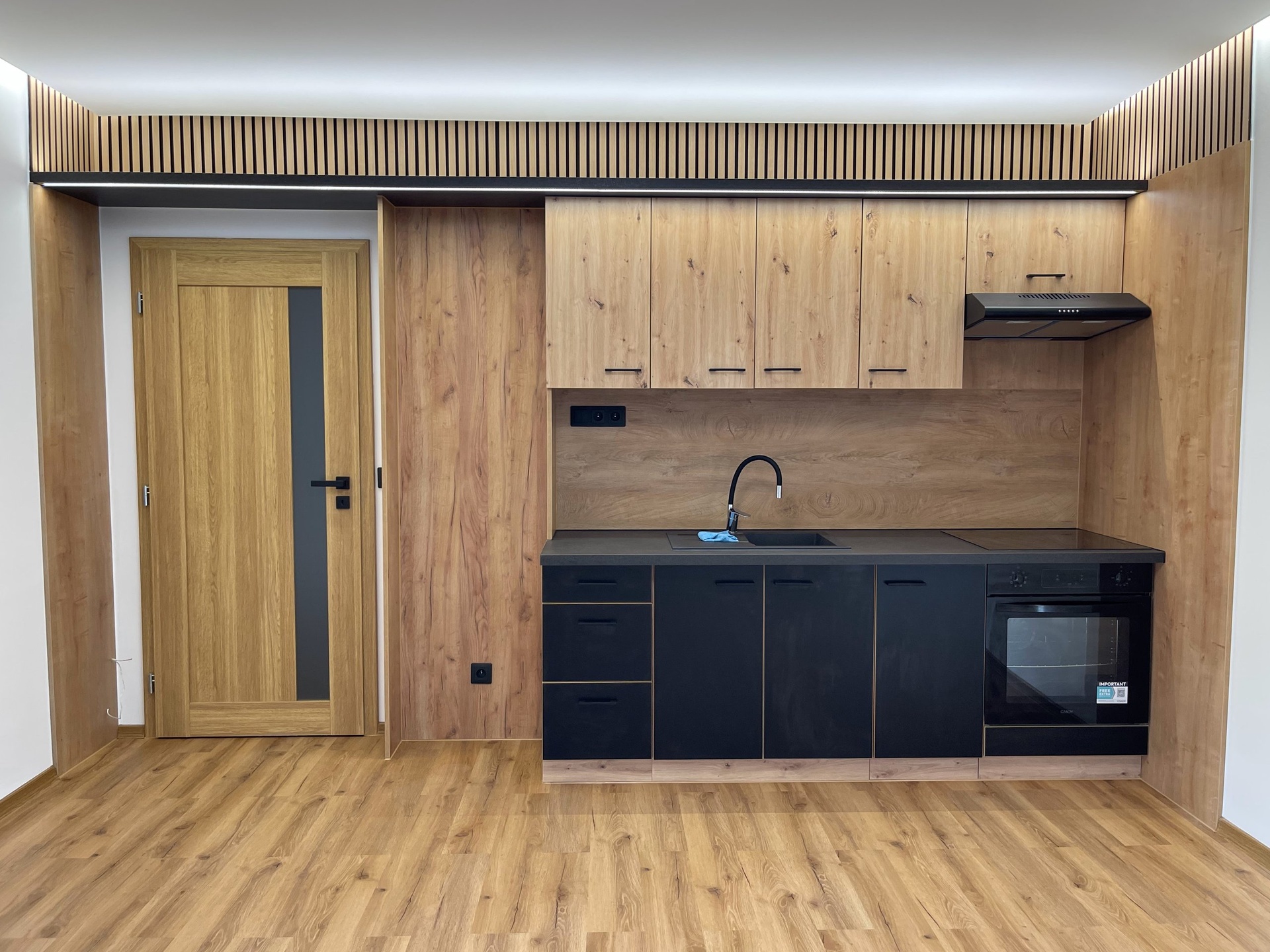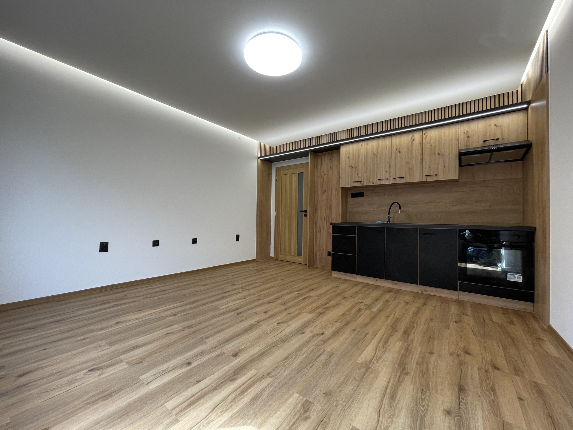 Světlý, prosluněný byt prošel moderní rekonstrukcí: plastová okna, kuchyňská linka s vestavěnou indukční varnou deskou, horkovzdušnou troubou a digestoří, komplet nová zděná koupelna s WC, interiérové dveře včetně zárubní, vinylové podlahy, nové štuky, malby, voda a odpad v plastu, stmívatelná svítidla na dálková ovládání. K bytu náleží sklepní kóje, společná sušárna na patře.