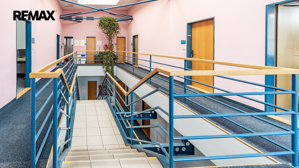 Dojíždění je snadné pro zaměstnance i klienty: do centra města jen pár minut, MHD v docházkové vzdálenosti, rychlé napojení na hlavní tah. Okolí nabízí plnou občanskou vybavenost, přitom bez rušného městského provozu – výborné místo pro každodenní práci i reprezentaci.