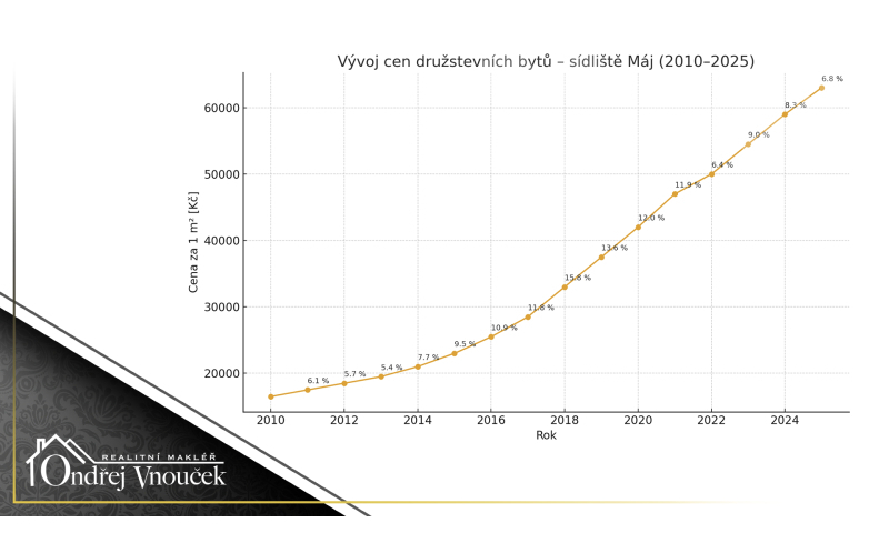 Ceny uvedené v grafu, jsou průměrnými cenami ze sledované lokality a nezohledňují stav, stáří ani vybavení nemovitosti.