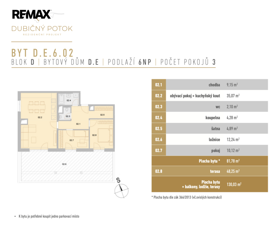 Nabízíme ke koupi prakticky řešenou dispozici 3+kk (označení D.E.6.02) v projektu Dubičný potok. Byt o výměře 81,78 m² se nachází v 6. nadzemním podlaží. K bytu náleží nadstandardně prostorná terasa o výměře 47,9 m², která nabízí velkorysý prostor pro odpočinek venku. Byt je připraven k okamžitému nastěhování.