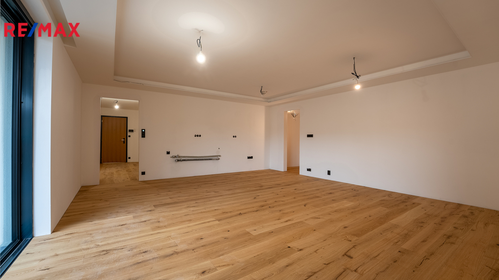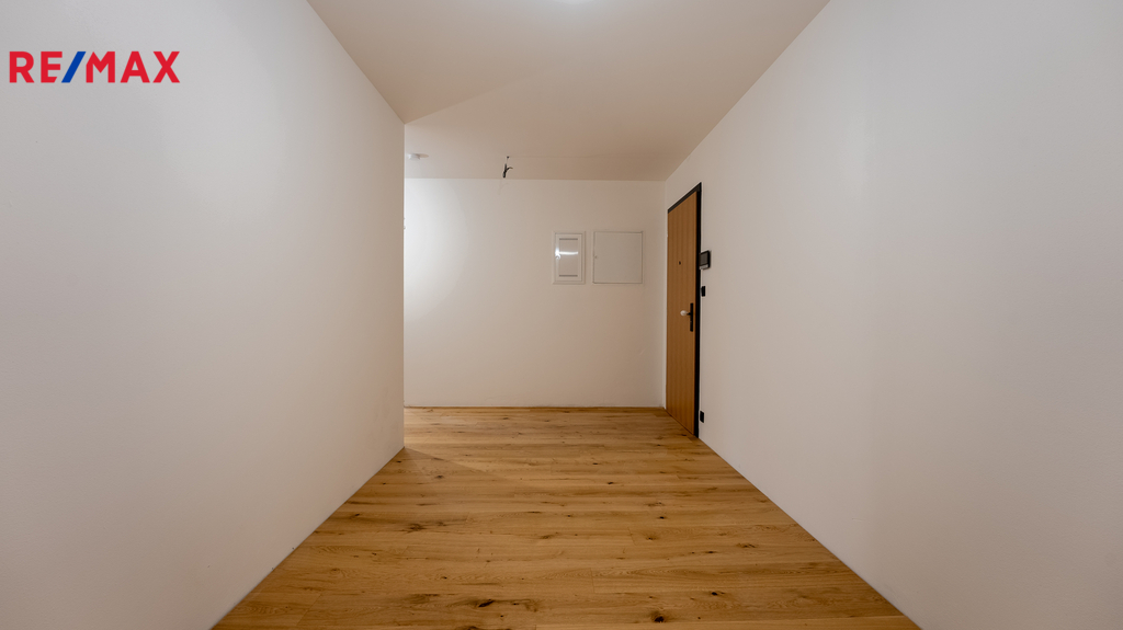 Dominantou bytu je velkorysý obývací pokoj s kuchyňským koutem a praktickou spíží, jehož plocha odpovídá bytu 1+kk. Ložnice je umístěna v klidové části bytu a nabízí maximální soukromí – disponuje vlastní šatnou a koupelnou. Druhá, prostorná koupelna je situována centrálně a je pohodlně dostupná z celého bytu.