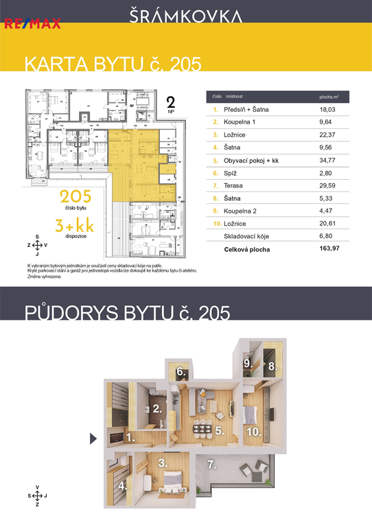 To nabízí nadstandardně prostorný byt 3+kk č. 205 s velkou terasou, dvěma koupelnami a šatnami. Ideální volba pro ty, kteří chtějí prostor, klid a kvalitu bez kompromisů.