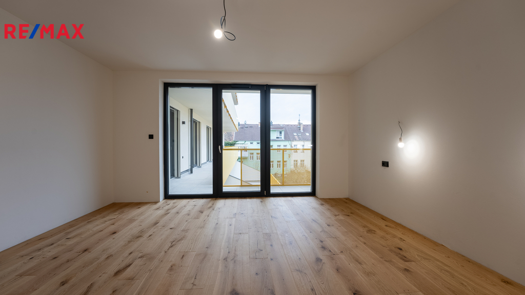 Skutečnou třešničkou na dortu je rozlehlá terasa do tvaru L, částečně krytá, která poskytuje dostatek prostoru pro relaxaci, posezení i zeleň. Vstup na terasu je ze všech obytných místností – přes francouzská okna nebo velkoformátový posuvný HS portál. Samozřejmostí jsou předokenní žaluzie. Byt je orientován na jih a západ, směrem do klidného vnitrobloku.