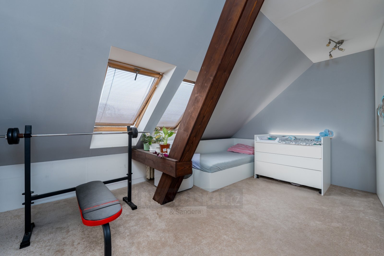 Interiér bytu vás okouzlí svou atmosférou – přiznané půdní trámy, krb a střešní okna vytvářejí útulný a zároveň vzdušný prostor. Byt prošel velmi zdařilou rekonstrukcí a modernizací, disponuje odhlučněnými podlahami a praktickým dispozičním řešením, které zajistí komfort i větší rodině.