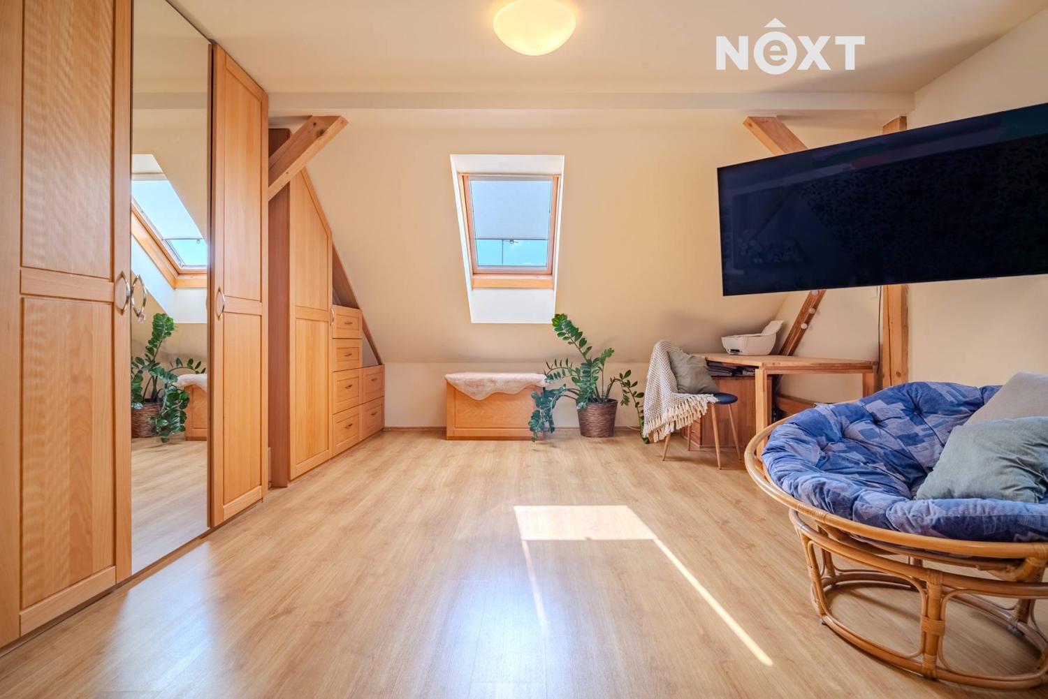 Další obývací pokoj nabízí dostatek místa pro rodinné setkávání či relaxaci. Ve 2. nadzemním podlaží naleznete pracovnu, koupelnu, samostatnou toaletu a dvě ložnice, což zajišťuje dostatek soukromí pro všechny členy domácnosti.