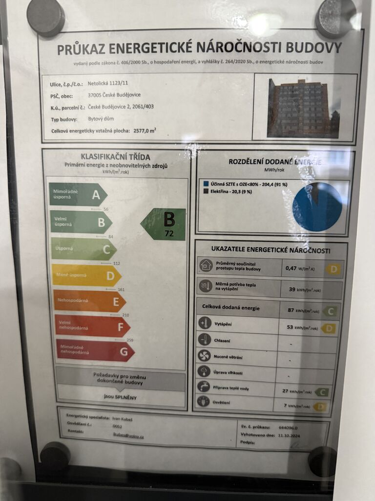 - Energetická náročnost budovy: B - Velmi úsporná