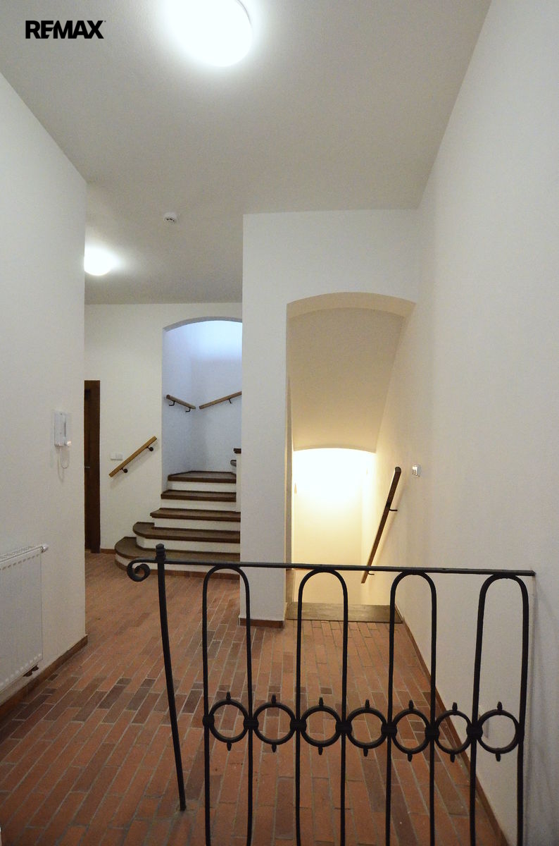 Exkluzivně nabízíme k dlouhodobému pronájmu atypický a zcela výjimečný byt 3+1 v historickém centru města, v bytovém domě se sedmi bytovými jednotkami v ulici Česká. Bytový dům je veden jako nemovitá kulturní památka, vše je po celkové rekonstrukci dokončené v roce 2022. Byt nabízí celkovou podlahovou plochou 166,95 m2 včetně garáže umístěné v přízemí bytového domu, samotný byt má 148,65 m2. Byt je situován ve třech nadzemních podlažích, vstupní část je umístěna v přízemí, samotné bydlení ve 2. a 3. nadzemním podlaží, vnitřní schodiště bytu je nejen komunikačním prostorem, ale i výrazným architektonickým prvkem. Ve druhém nadzemním podlaží se nachází obývací pokoj 32 m2, hala se schodištěm, kuchyně 12 m2, ložnice 16 m2 s balkonem a koupelna s vanou, ve třetím podlaží ložnice 28 m2, koupelna se sprchovým koutem a galerie nad schodištěm. Kuchyně je v provensálském stylu, je plně vybavena - varná deska, digestoř, elektrická trouba, myčka, lednice, mraznička. V pokojích ve 2. nadzemním podlaží byly zachovány a restaurovány původní parketové podlahy, nové materiály pečlivě vybírány s ohledem na výjimečnost objektu. V přízemí domu se nachází společné prostory pro všechny byty (kolárna, sklad, technická místnost - prádelna), kotelna - předávací stanice a komerční prostor. Bytový dům je po celkové rekonstrukci, která probíhala pod trvalý dohledem architekta, byt tak nabízí jedinečnou možnost moderního bydlení přímo v centru města. Jedná se o klidnou lokalitu, vše se nachází v docházkové vzdálenosti vč. nákupních možností např. v OC Mariánská vzdáleném 200 m.